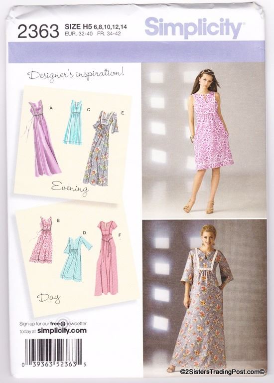 Simplicity Designer's inspiration misses' pullover dress in two lengths with trim variations. Pattern #2363 Size H5 6-8-10-12-14 MSRP $16.95