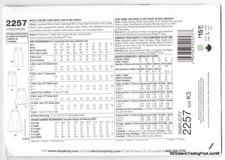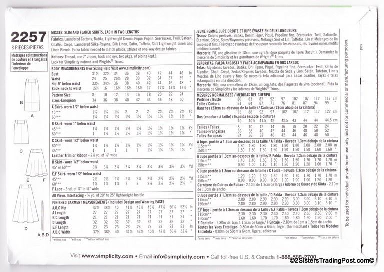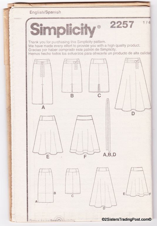 Simplicity easy-to-sew misses' skirts each in two lengths skirt. Pattern #2451 Size D5 4-6-8-10-12 MSRP $16.95