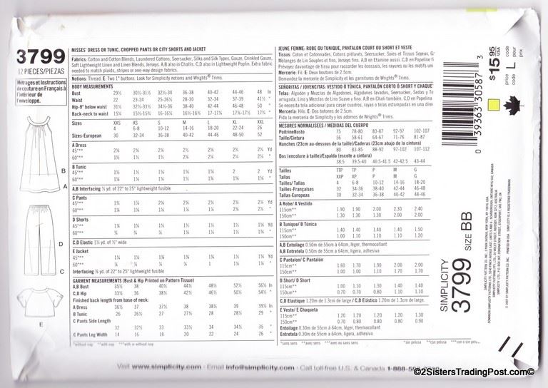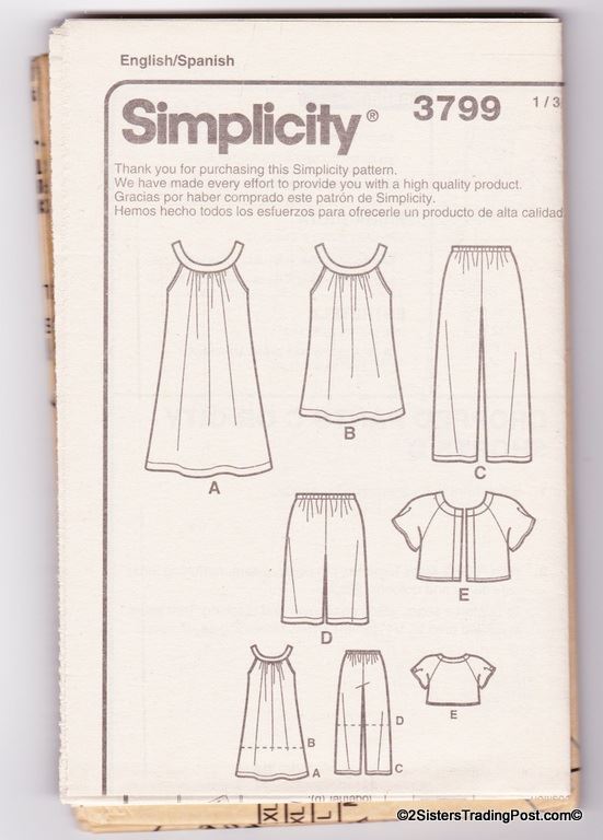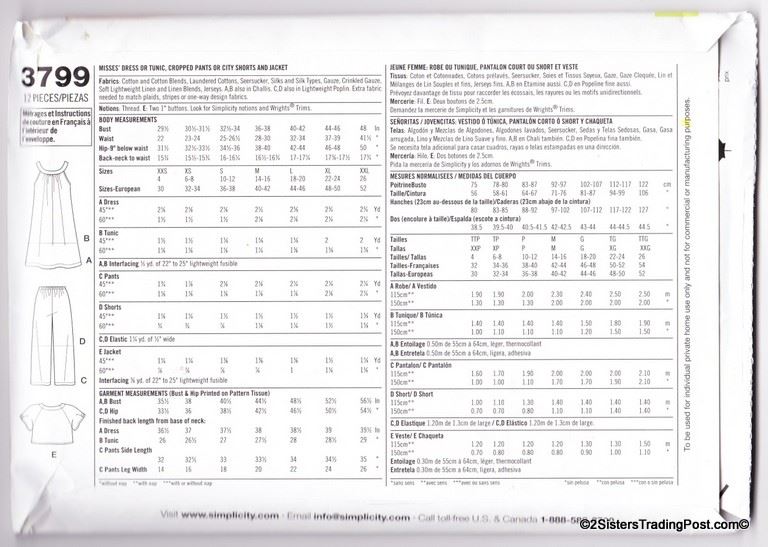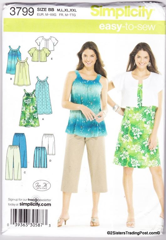 Simplicity easy-to-sew misses'/women's top in two lengths, pants, skirt and sash or scarf. Pattern #3568 Size BB 20W-28W MSRP $15.95