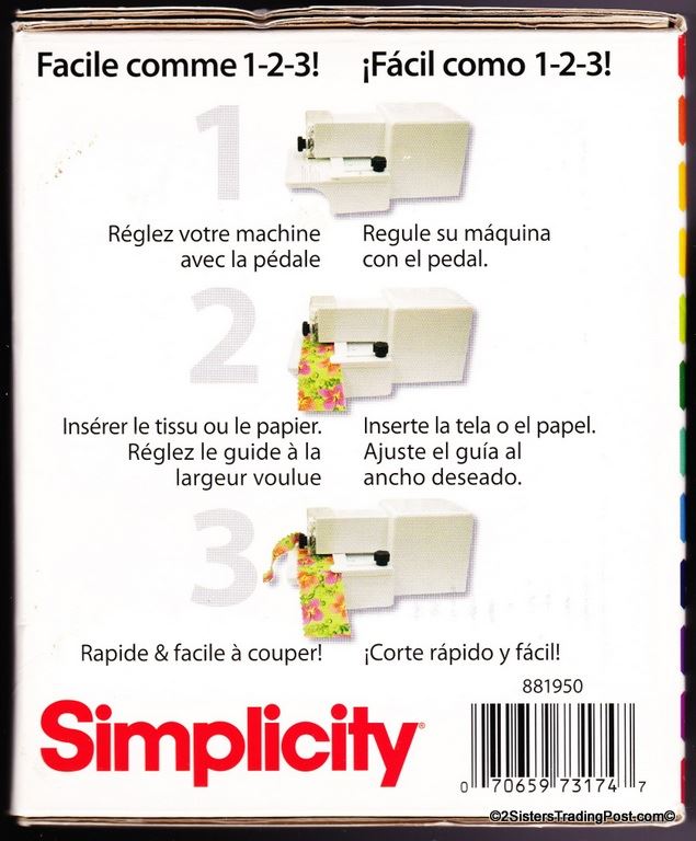 Simplicity Rotary Cutting Machine included foot pedal. Cuts straight or pinked edges, adjustable cutting width from 0.5" to 2.5", cuts fabric or paper. NIB MSRP $79.99