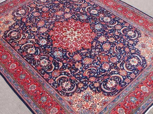 Rug: Handmade Finely Contrasted Persian Mahal; Material: Made of the finest quality baby lamb's wool pile, all natural vegetable dye; Size: 12.4 x 9.10 feet; Foundation: Cotton; Design: Mahal; Origin: Iran; Description: Hand woven and signed by the master Persian carpet weaver Aghaee