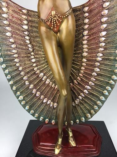 Absolutely Lovely French Bronze Sculpture. Original French bronze sculpture on marble base. This darling original French bronze sculpture, emanates a certain elegance and pride from the posing lady along with her peacock by her side. It is noteworthy that this original bronze sculpture has been created using the lost wax method. Size: 20X12X4 inches. Country of Origin: France
