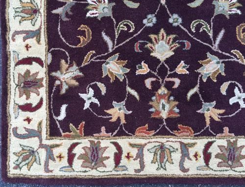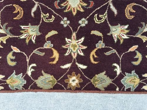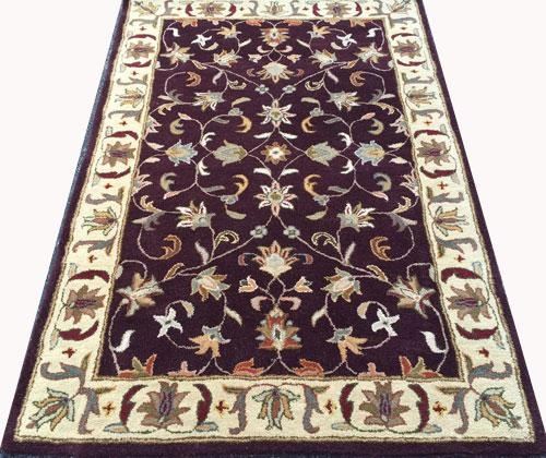 Simply Captivating High Quality Tabriz Design Rug. 100%Natural, vegetable dye, hand woven, worsted wool pile on cotton foundation. This is a strikingly beautiful allover Tabriz design on a rare and sought after rich plum color background. The crisp and well defined curve-linear design is a testament to the fine weave and the artistic workmanship. The soft worsted wool pile gives this rug a lovely glowing appearance and a velvet like softness underfoot. This is a captivating piece. Size: 6 feet X 4 feet. Country of origin: Tibet.