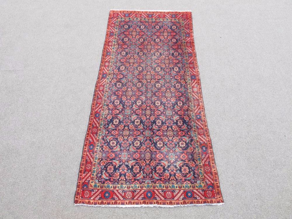 Rug: Handmade Semi Antique Persian Malayer Rug; Material: Made of the finest quality baby lamb's wool pile, all natural vegetable dye; Size: 9.4 x 3.9 feet; Foundation: Cotton; Design: Malayer; Origin: Iran