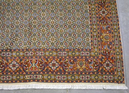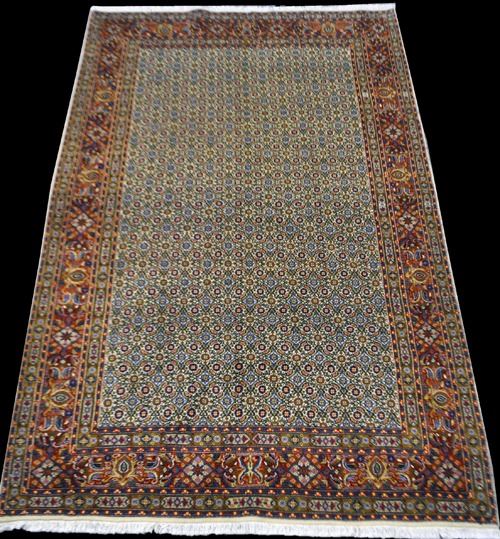 Rug: Handmade Persian Mood; Material: Fine quality baby lamb's wool pile, all natural vegetable dye; Size: 5.2 X 8.3 feet; Foundation: Cotton; Design: Persian Mood; Origin: Iran
