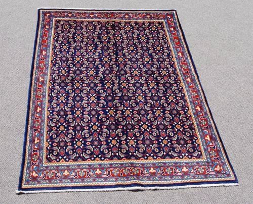 Simply spectacular highly detailed Persian Sarouk. Made of fine quality lamb's wool pile on cotton foundation, all natural vegetable dye, fish design. Hand woven in city of Sarouk from iran. about Sarouk Rugs: The thickness of the luxurious pile allows sarouk Rugs to withstand the level of foot traffic that would be typical in hallways, common rooms and foyers. The style, quality and durability of sarouk Rugs have made them extremely popular with western consumers then and now. Sarouk carpets derive their name from an obscure village in persia, located twenty miles north of Arak, formerly sultanabad. Over a short span of history, this village produced some of the most highly regarded persian weavings of the late 19th to early 20th century. Size: 4 feet 9 inches X 6 feet 10 inches.