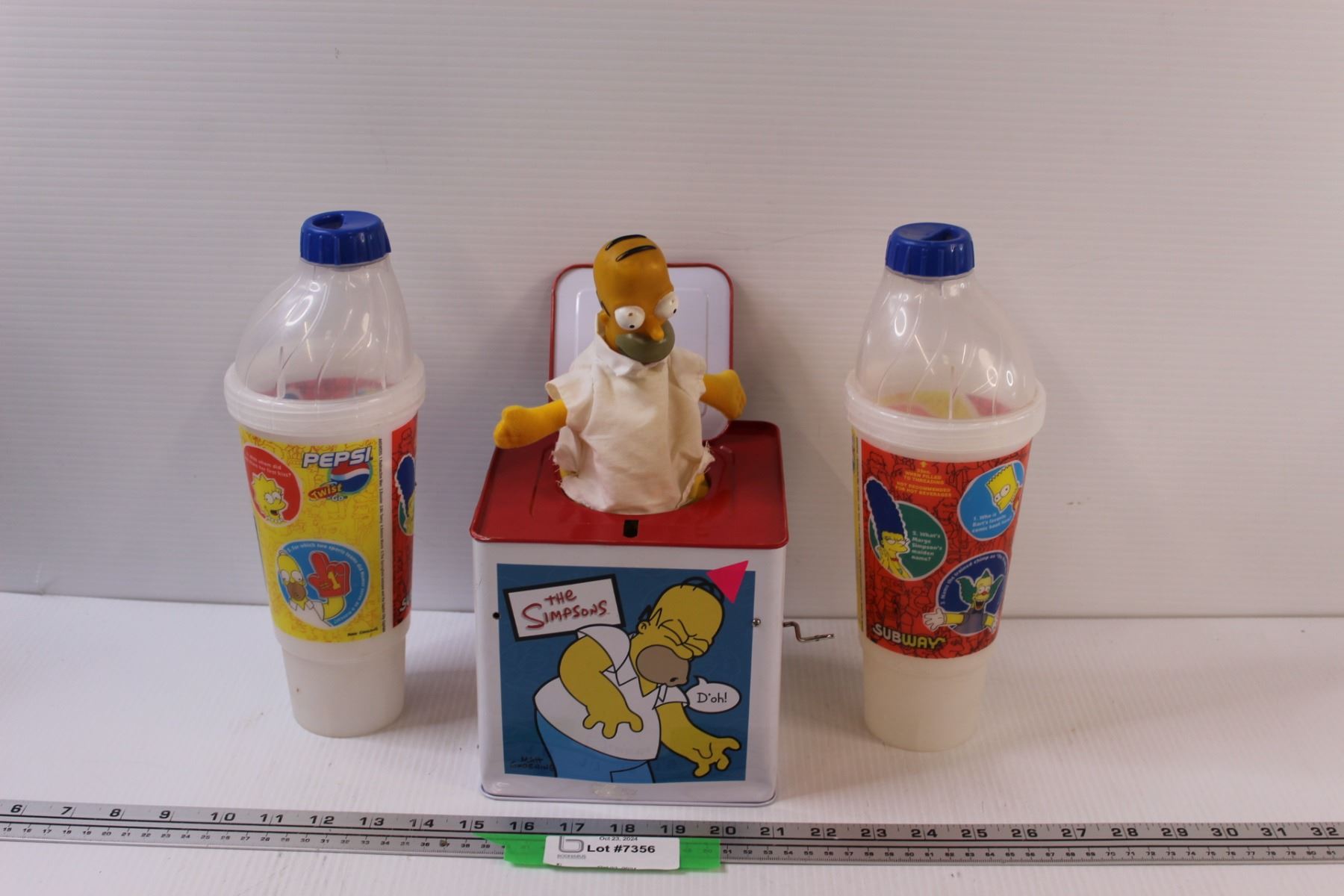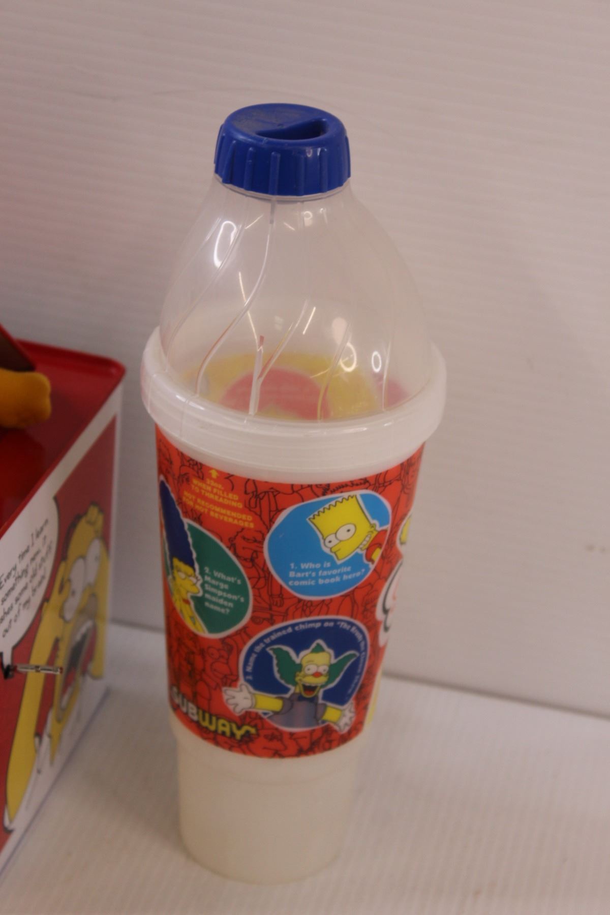 Simpsons Homer-In-The-Box (latch missing), 2 Subway drinking cups