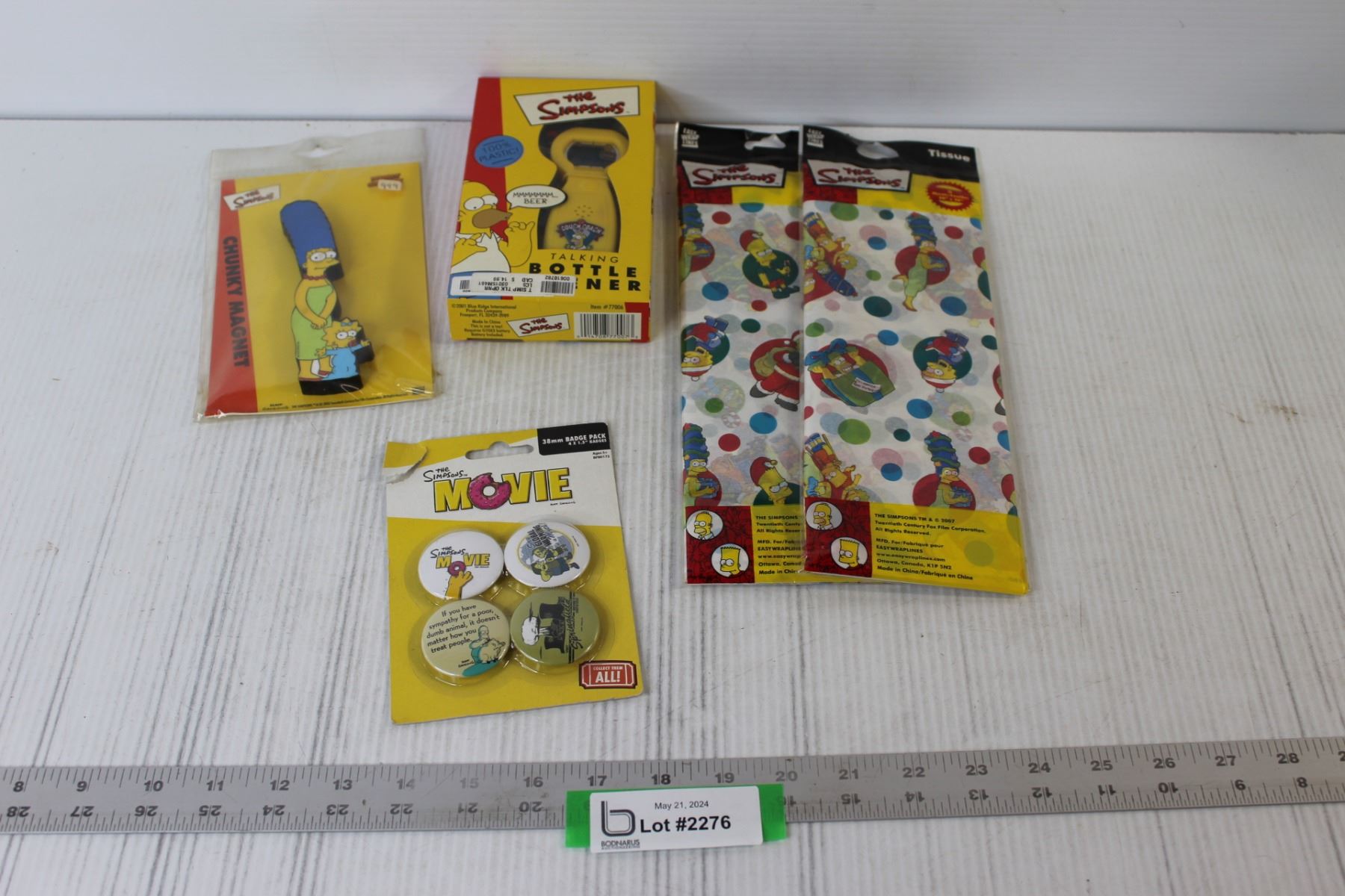 Simpsons Talking Bottle Opener, Fridge Magnet, Buttons, Wrapping Tissue Paper