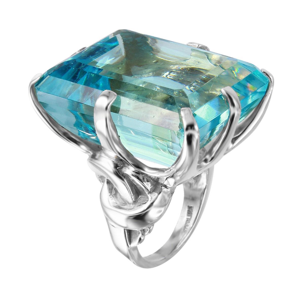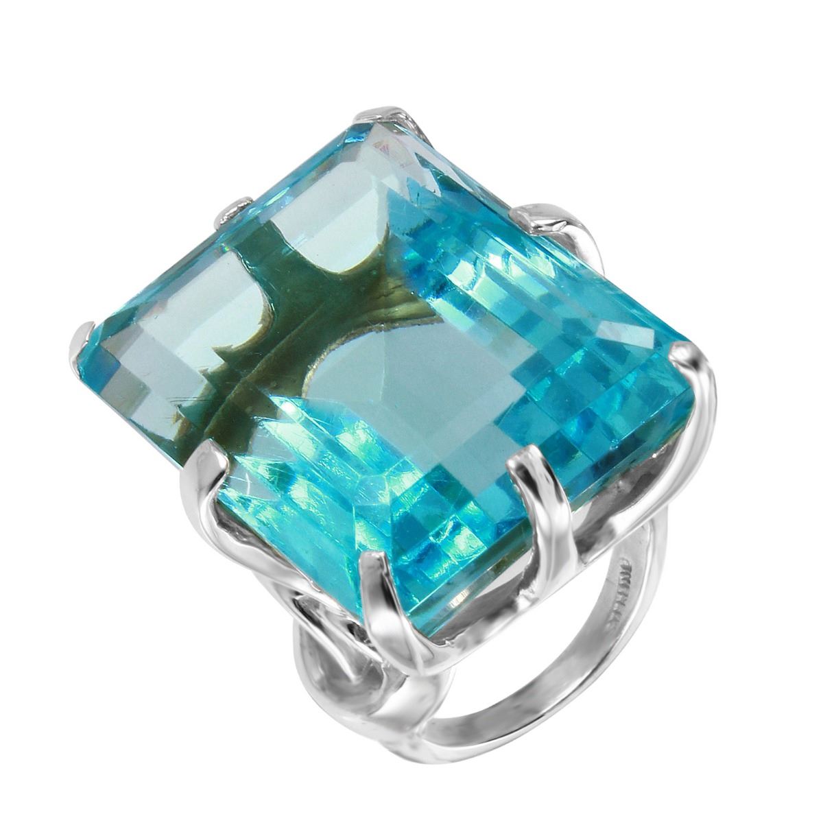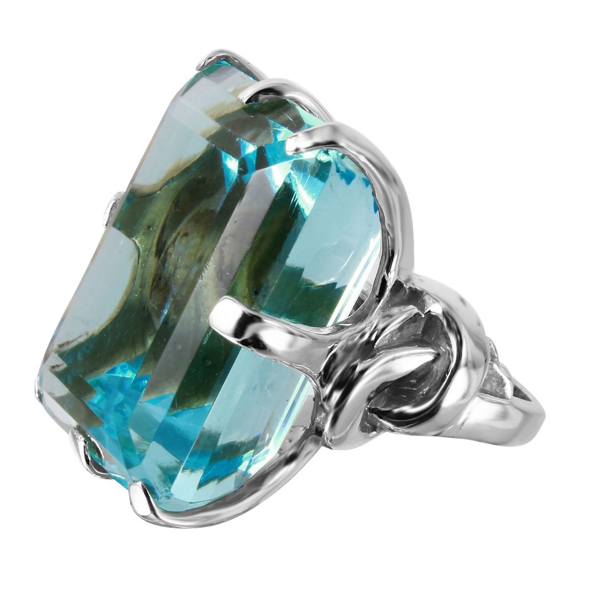 Sterling silver simulated aquamarine that measures 30mm x 25mm. Prong set on an interlocking twisted design shank. Total weight of ring: 29 grams. The descriptions listed should not be construed as an appraisal. The detail is provided as a guideline for color, clarity, weights and measurements to the best of our ability. We welcome inspections. WE SHIP WORLDWIDE!