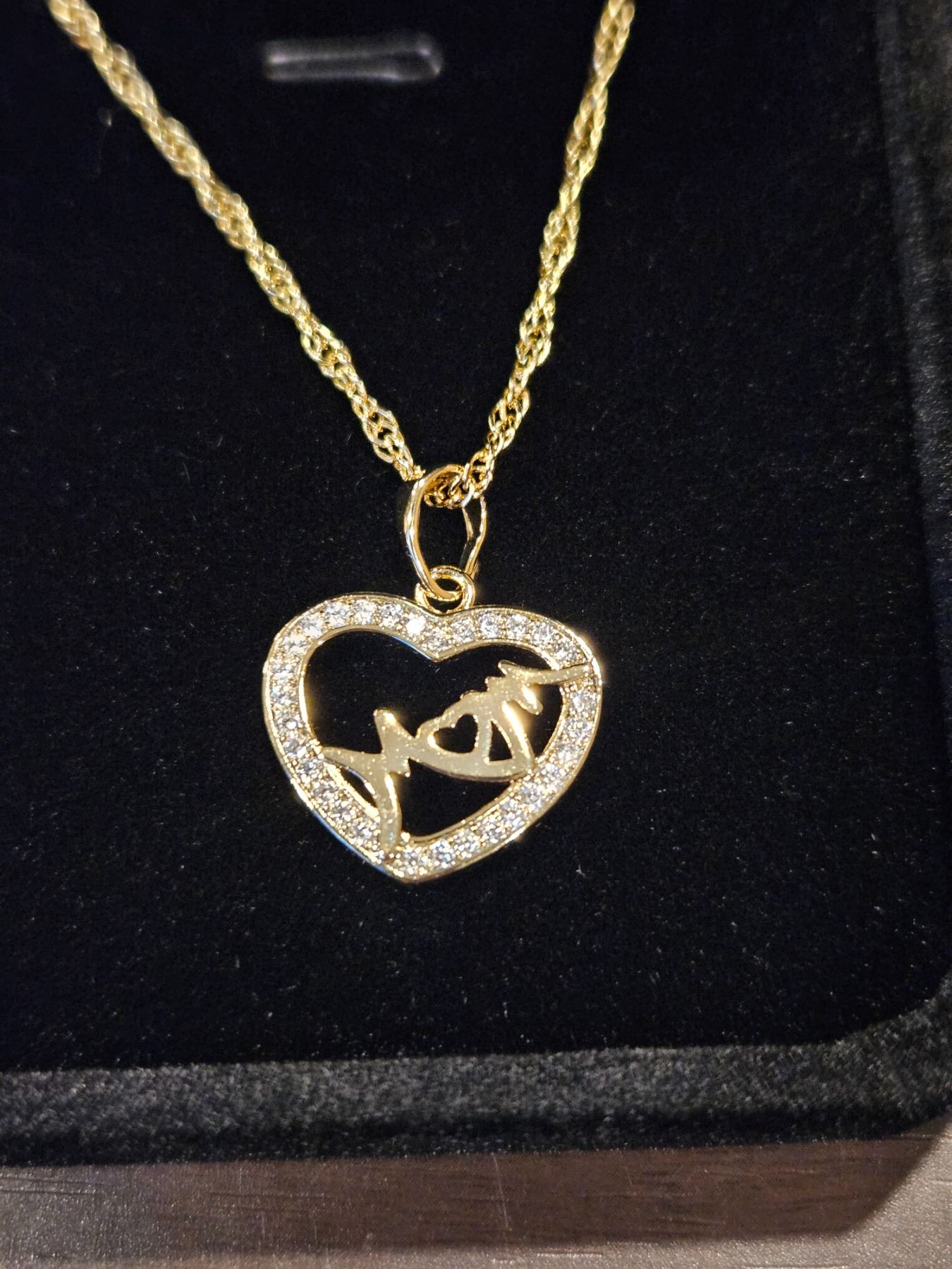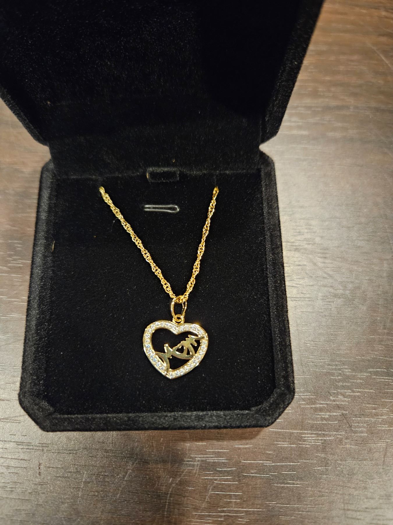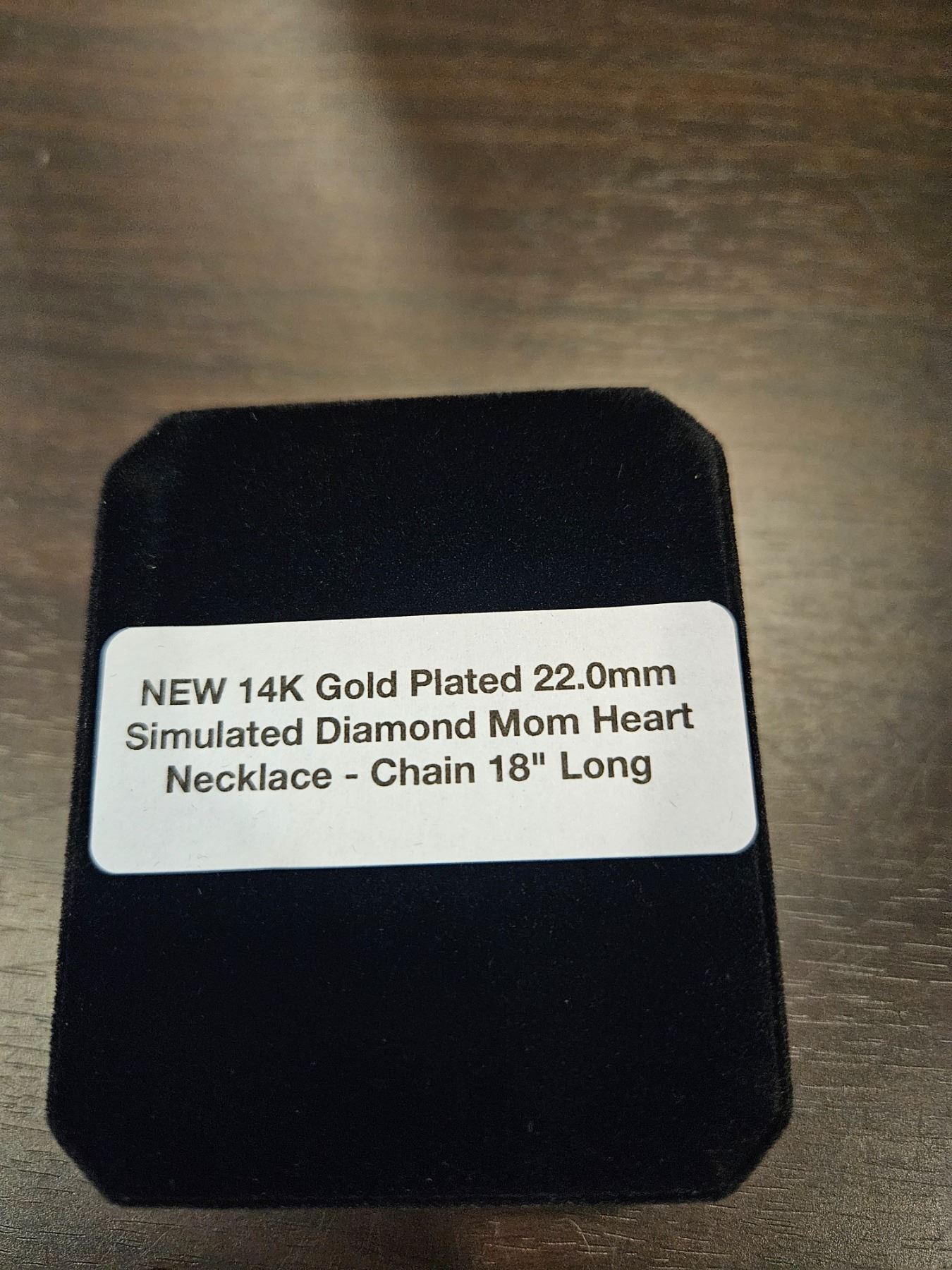 14K gold plated 22.00mm Simulated diamond Mom Heart Necklace- Chain 18" long
