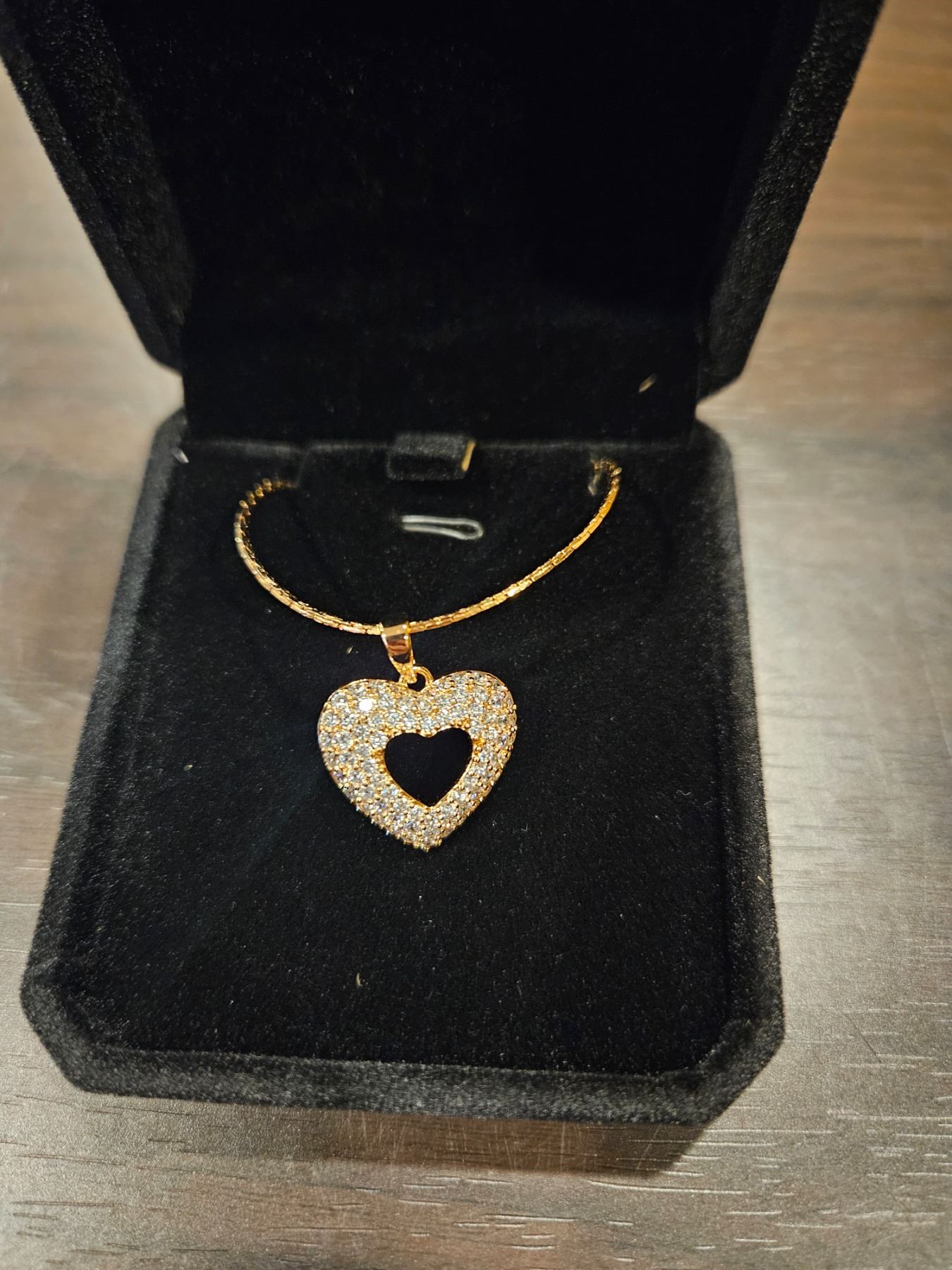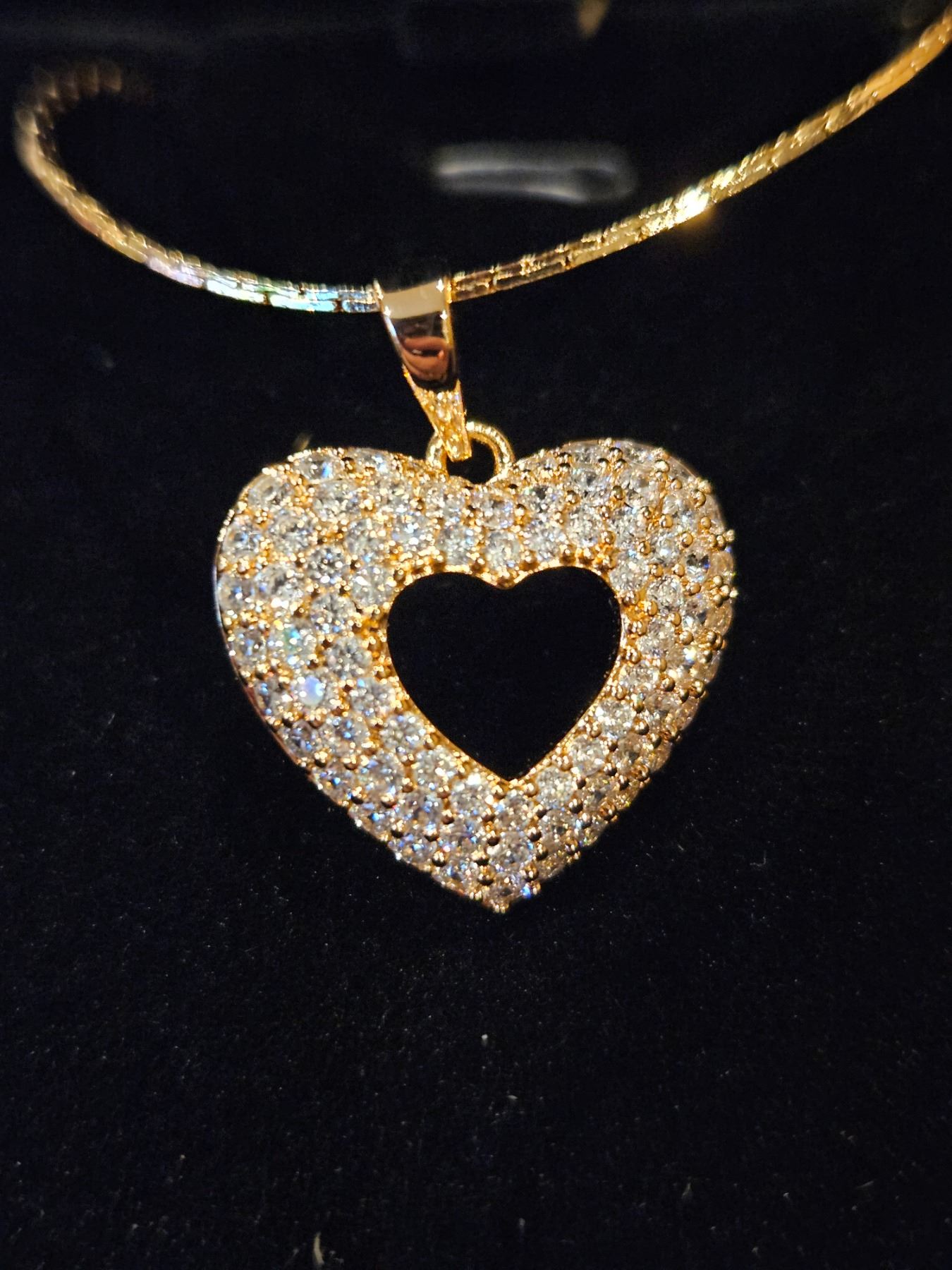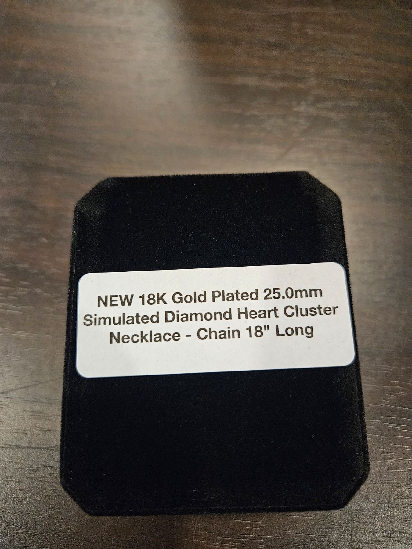 18K gold plated 25.0mm Simluated diamond heart cluster necklace- Chain 18" long