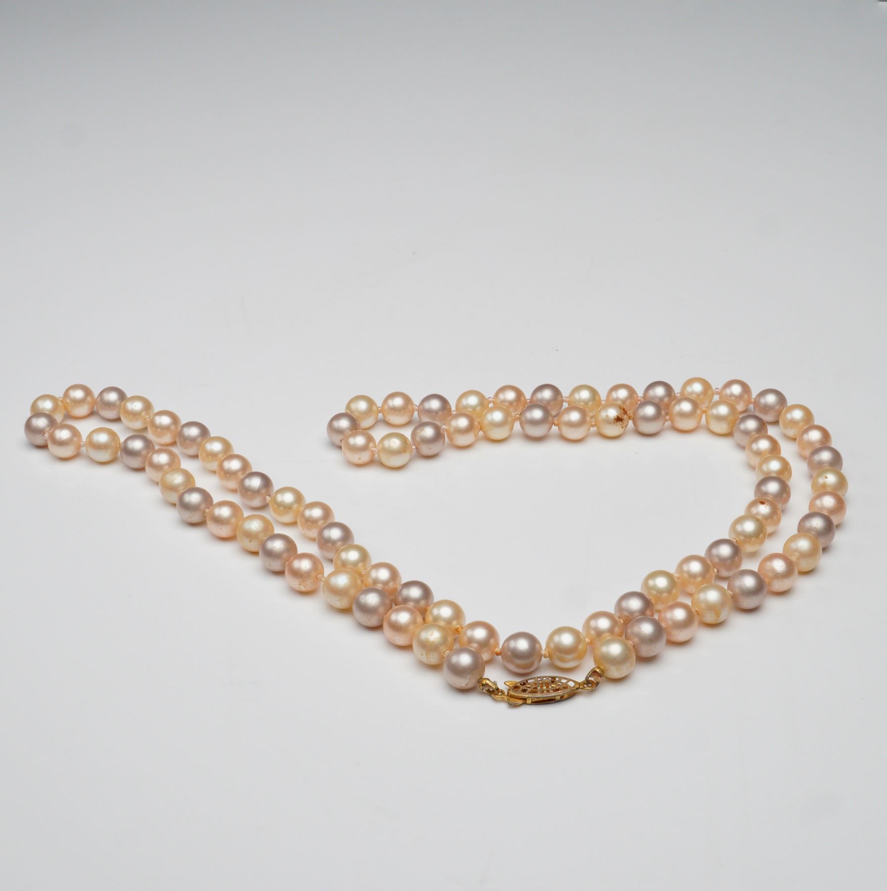Dimensions: Length when laid flat, end to end: 31" / Each pearl has a diameter of approx. 8.1 mm