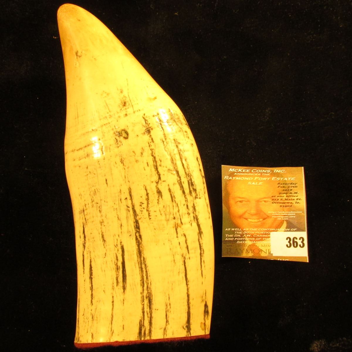 2. This is a public auction and mail bid sale conducted by a licensed and bonded auctioneer. There will be a 20% Buyer's Fee added to all invoices. There will be a 5% discount to people paying by cash, check, or money order through the internet. The auctioneer may open bidding at a reasonable price on each lot, usually 5 or 10% above the second highest mail bid, and may set bidding increments as he deems necessary. The auctioneer's