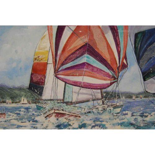"Beautiful Sails at Sea". Framed. 39"x31.5"