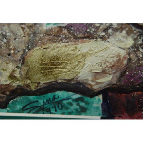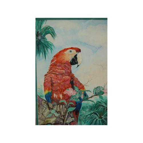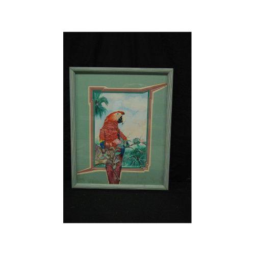 "Polly Wanna Cracker". Framed. Matte discolored at base. 24.5"x13.5"