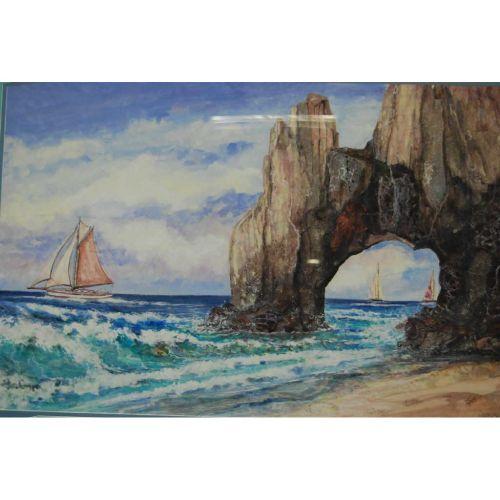 "Image Through Castle Rock". Framed. Frame needs repair. 27.5"x53"