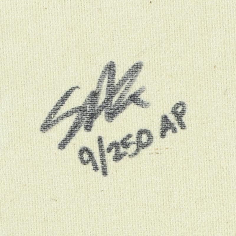 Sinatra is a hand embellished limited edition silkscreen on canvas by Andy Warhol protege Steve Kaufman (1960-2010). This piece is AP numbered 9/250 and hand signed inverso. Includes letter of authenticity. Measures approx. 24" x 36" (image).