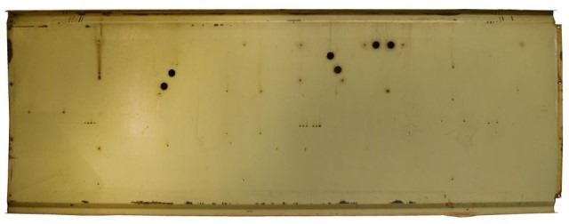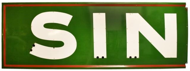 1.5" x 39" x 71" (1), 1.5" x 39" x 108.5" (2), Three piece porcelain sign with factory holes for neon.