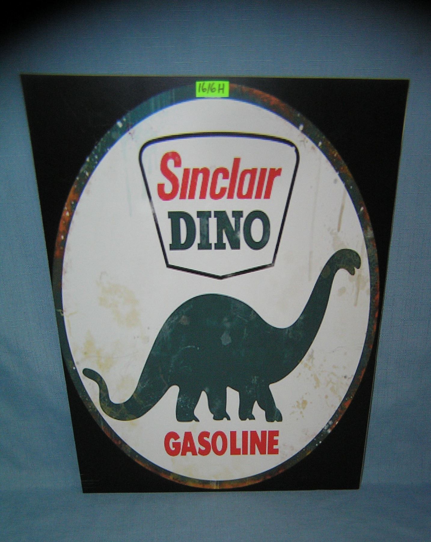 Sinclair Dino Gasoline retro style advertising sign 12 inches by 16 inches these signs are printed on PVC hard board and are sold for their decorative display purpose est. value $40.00-$50.00