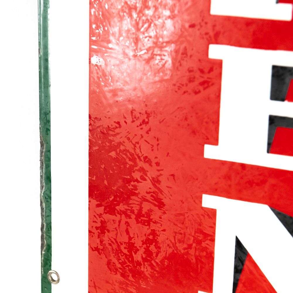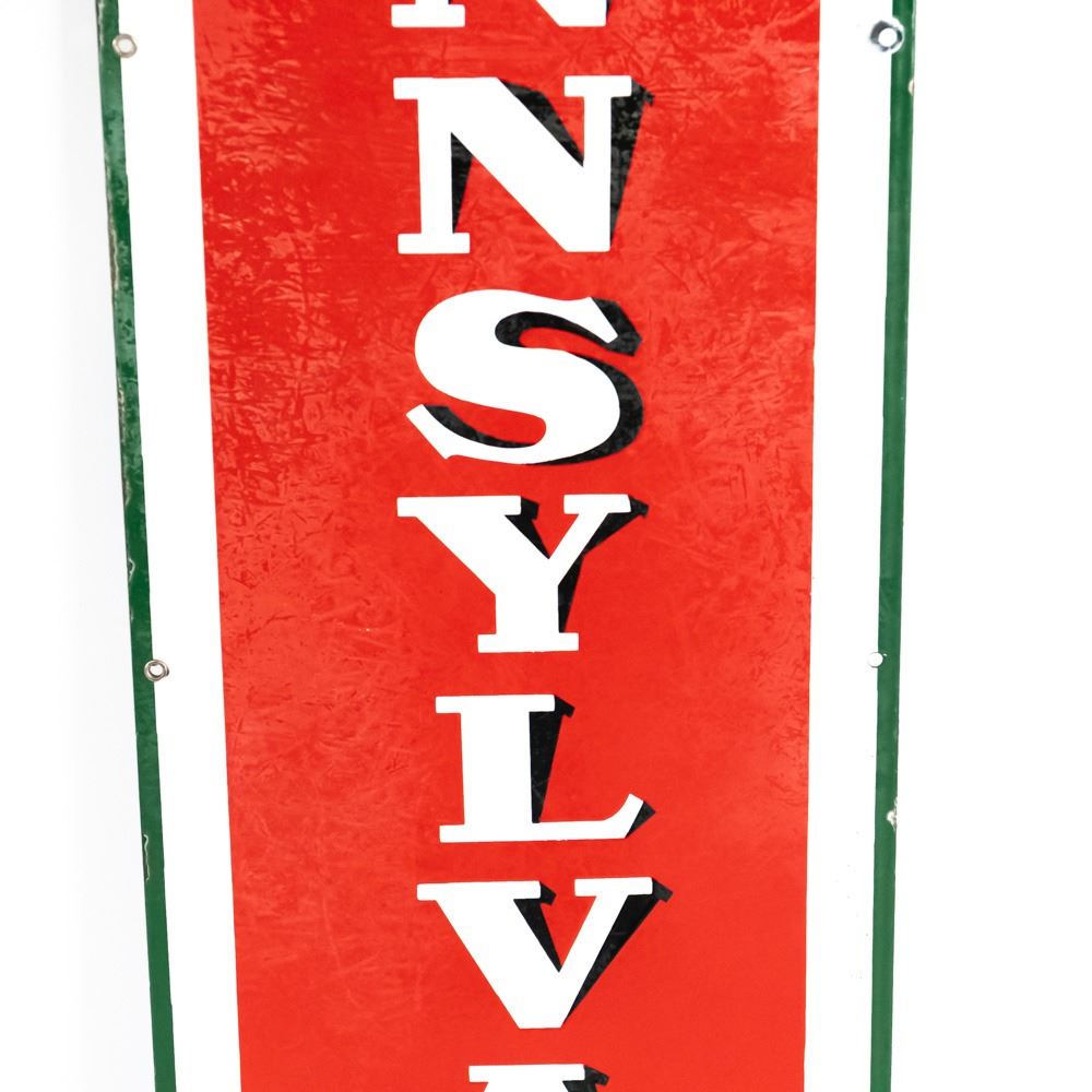 "Sinclair Pennsylvania Motor Oil" single sided elongated porcelain advertising sign. Very Good to good overall condition with some discoloration, stray marks, porcelain chips (by "L" and edges) and oxidation; Slight dullness to gloss. Approximately 60"t x 15"l. Please use photos to judge condition and bid accordingly.