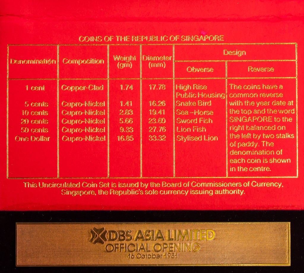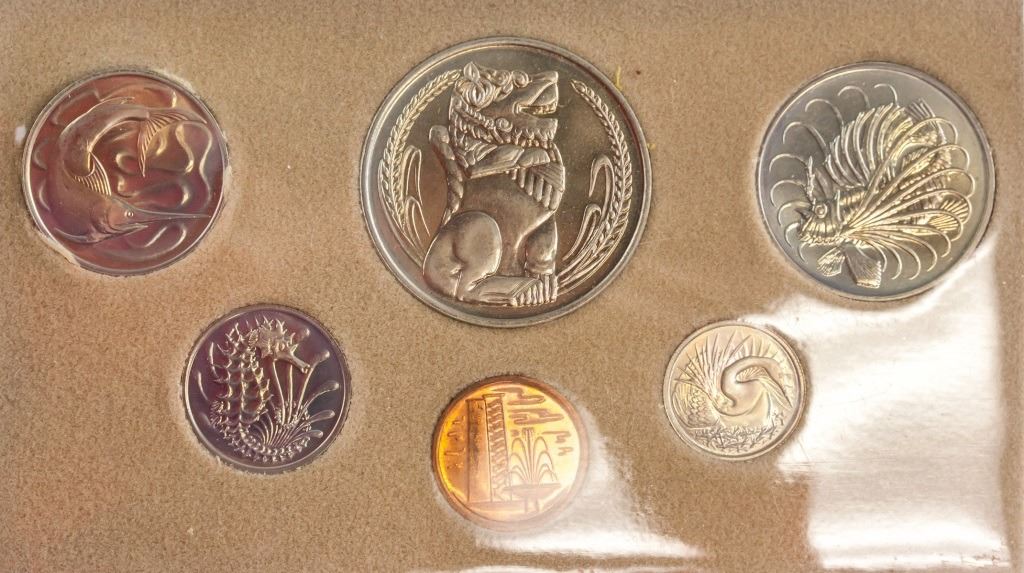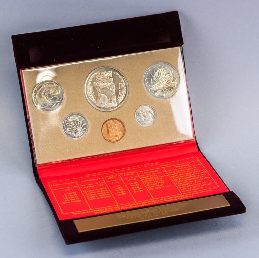 Lot of 5 Singapore coins, in a set, with collectors case. Uncirculated. 10 x 14 cm. 129 grams.