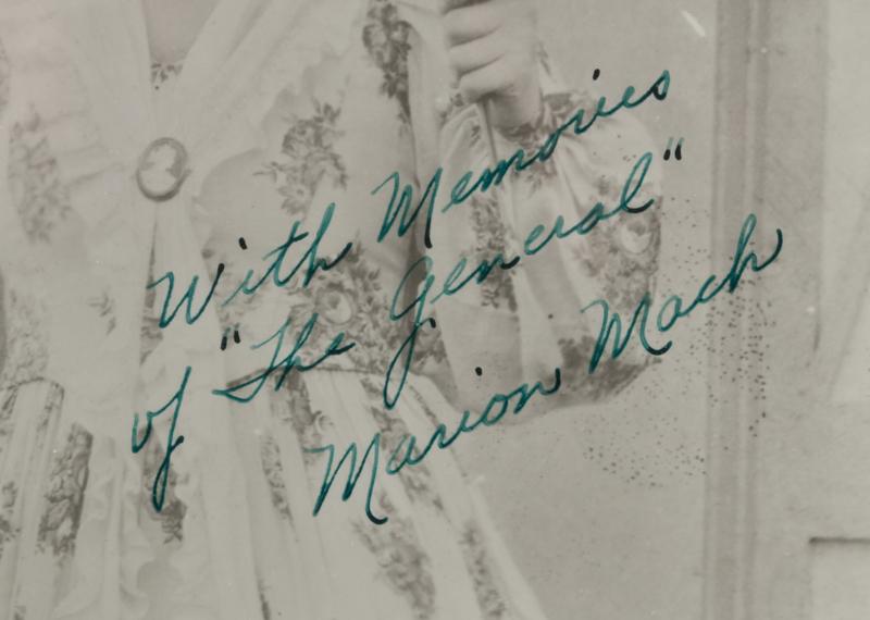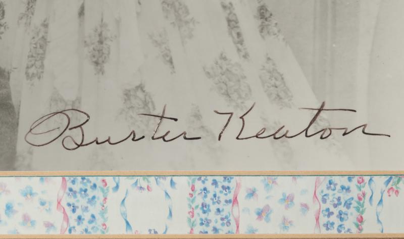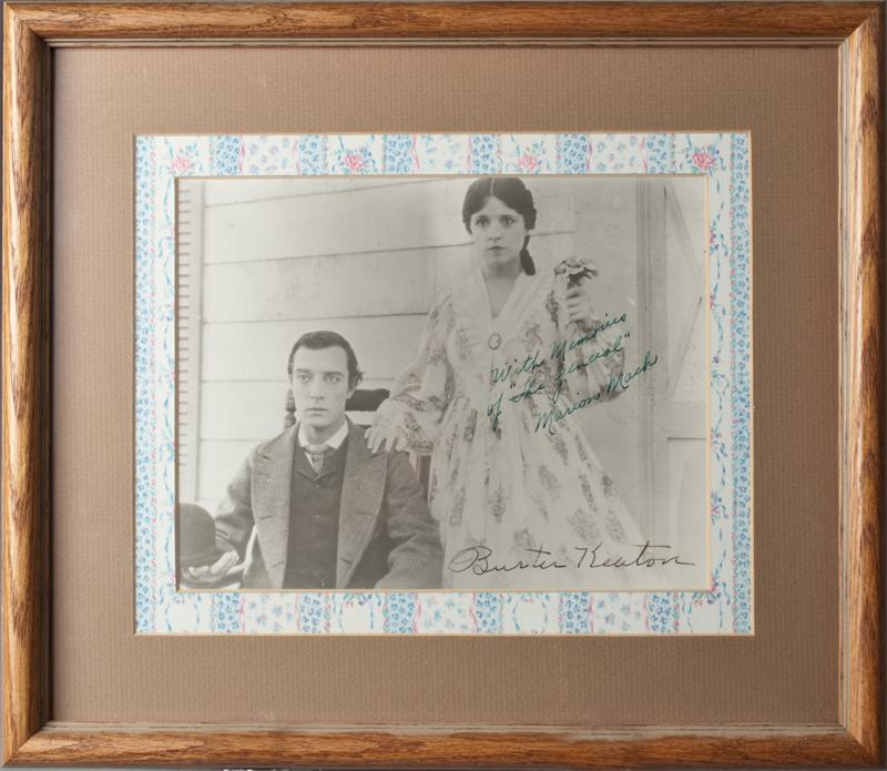 Framed photo signed in green, "With Memories of "The General" Marion Mack, and "Buster Keaton" in LL. 13" H x 15" W with the frame.