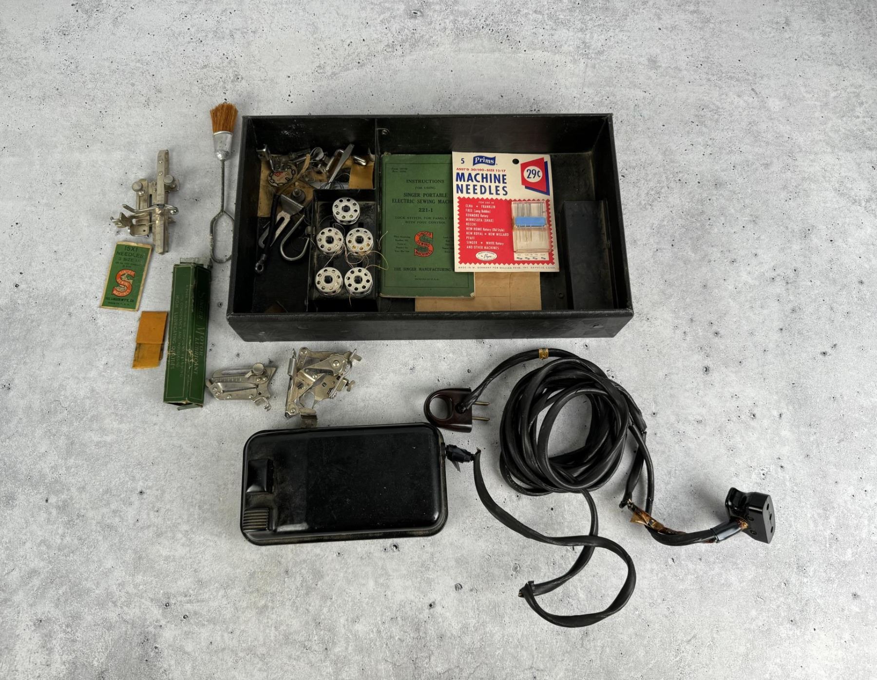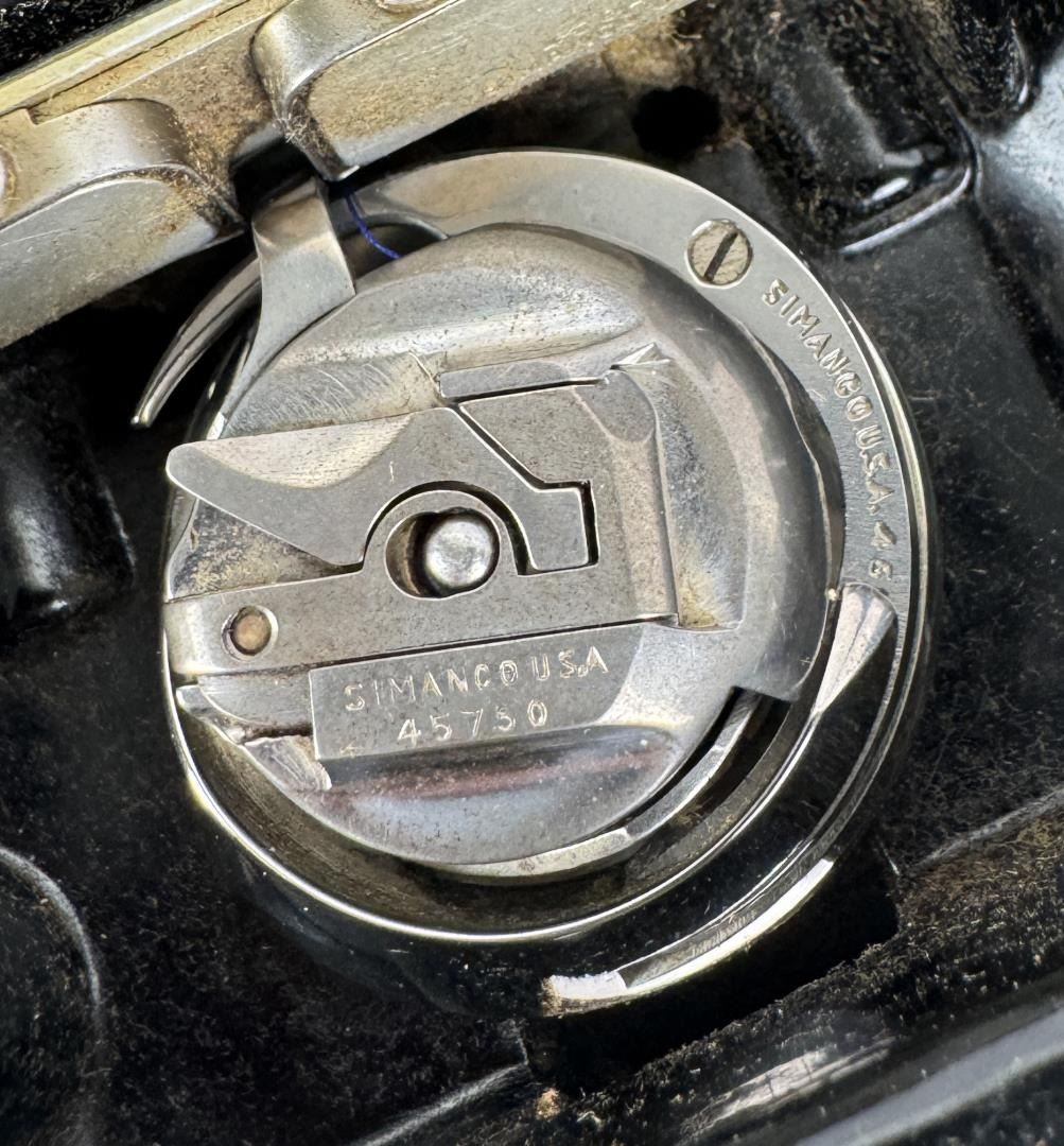 Working machine. The power cord is in poor condition, and should be replaced. Comes with the Bobbin Case.