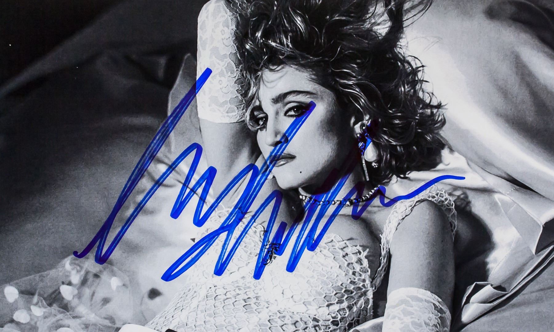 An autographed photograph signed Madonna (b.1958 American). With letter of authenticity offered by James Spence Authentication. 15.2 x 25.3 cm.