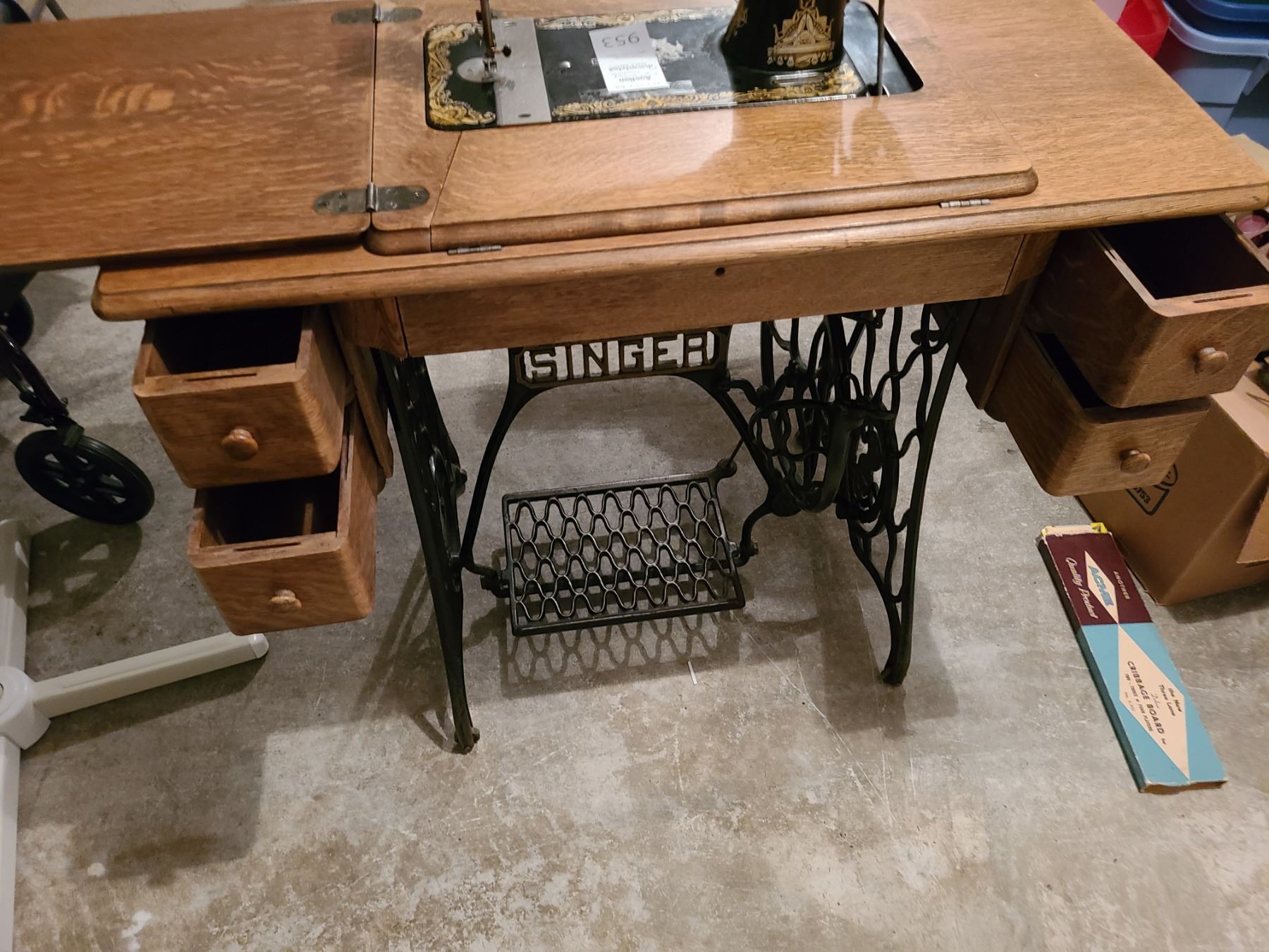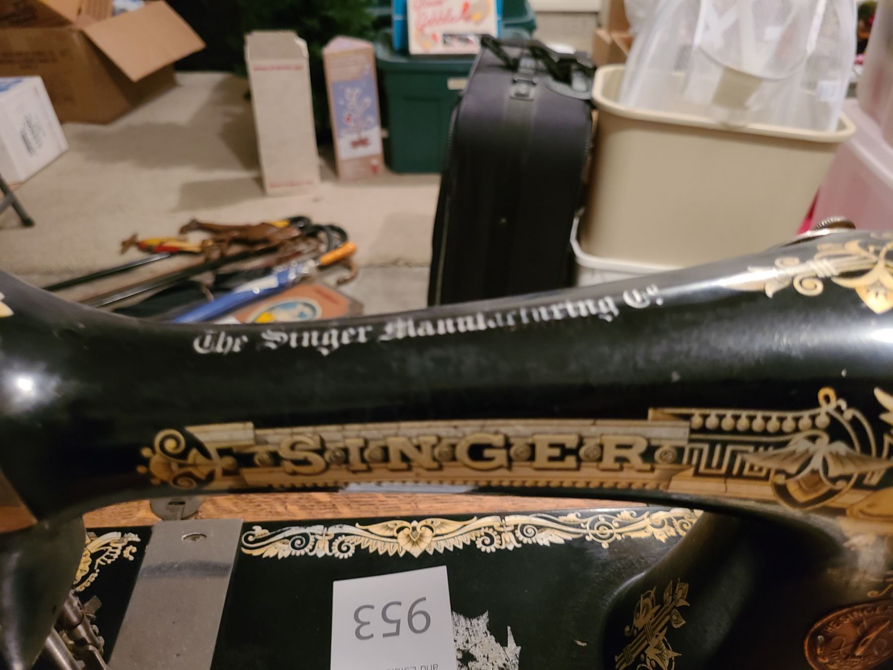Singer sewing machine in wooden cabinet. Pickup 9 am.