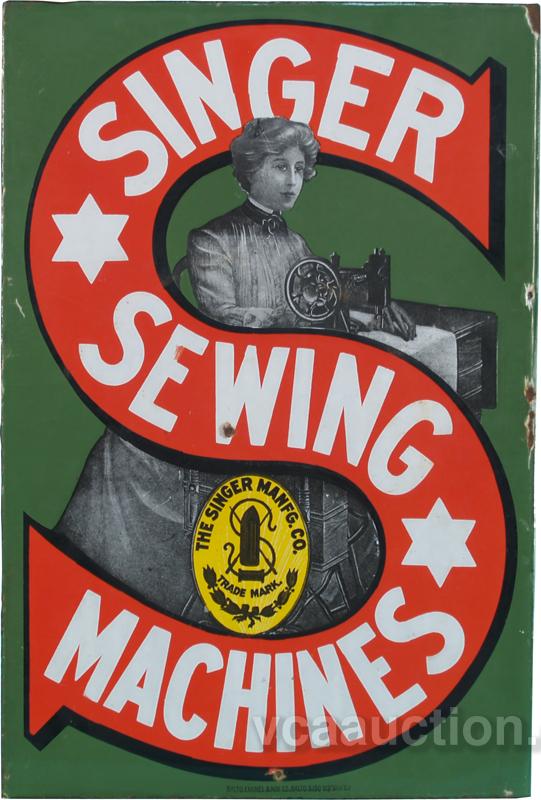 Singer Sewing Machine Double Sided Flange Porcelain Sign, all original - 16" x 24"