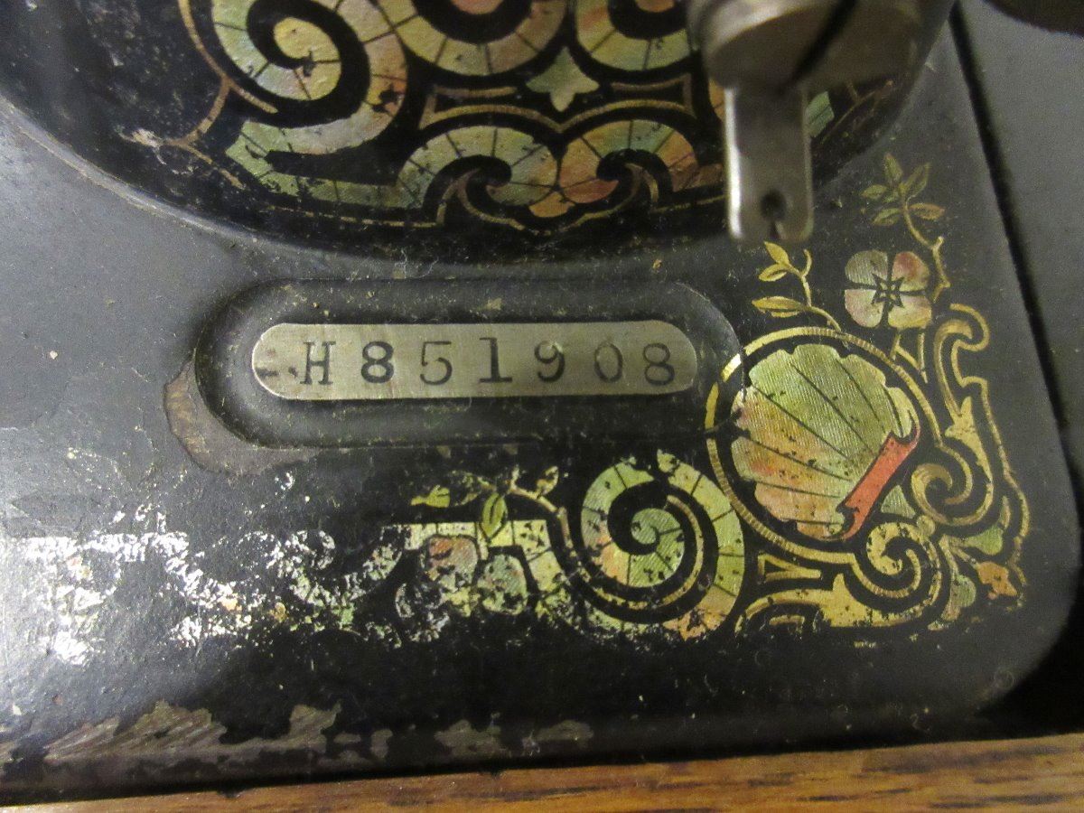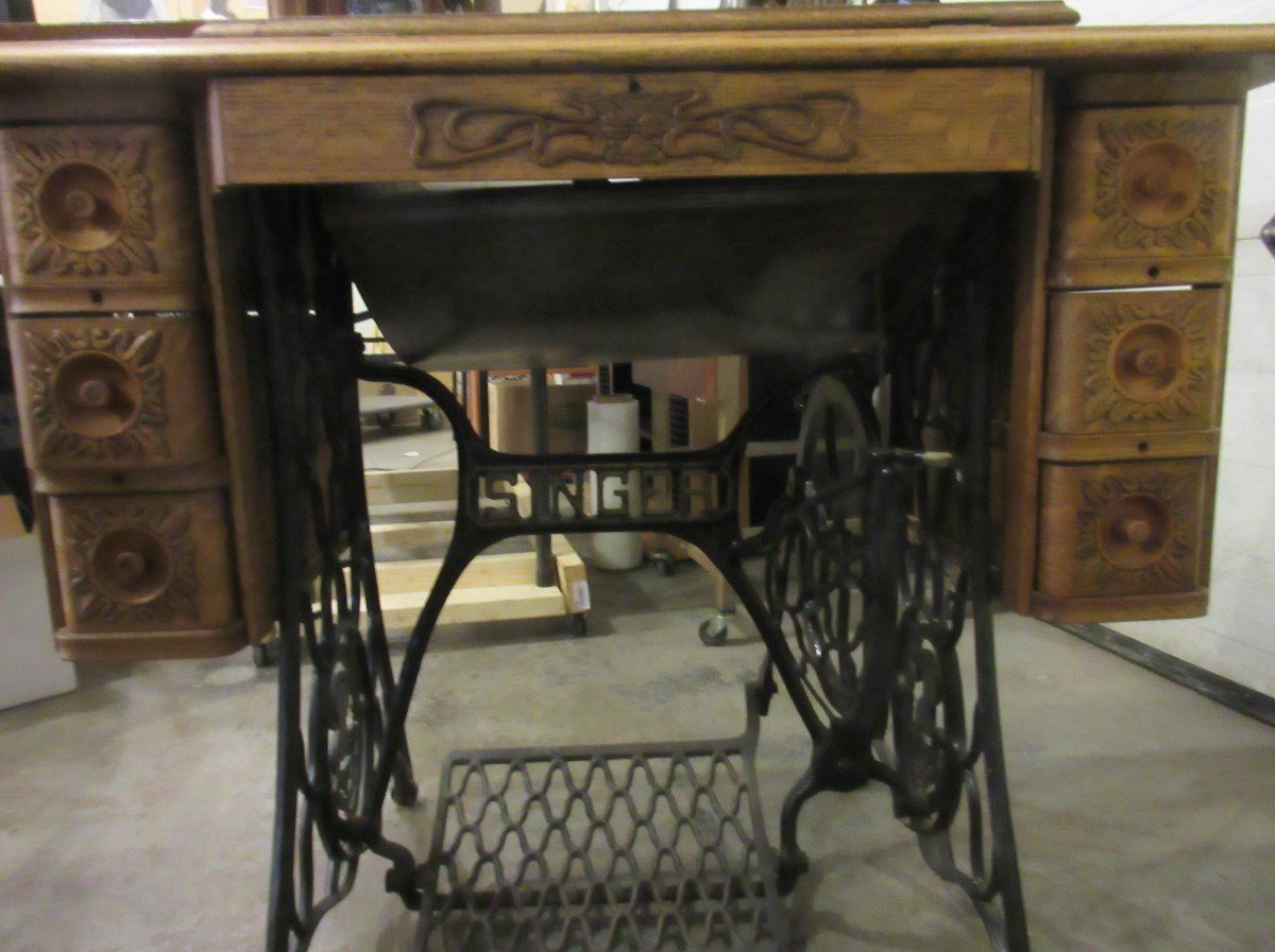 Beautiful Singer Sewing Machine and Stand Not sure of the year but has the H85 1908 on it. Also says Patented Dec5 - 1882, Sept. 22 - 1885, July 19 - 1887, Aug.21 - 1988, Jan. 13 - 1891 Drawers are all nice and clean with Original nobs????