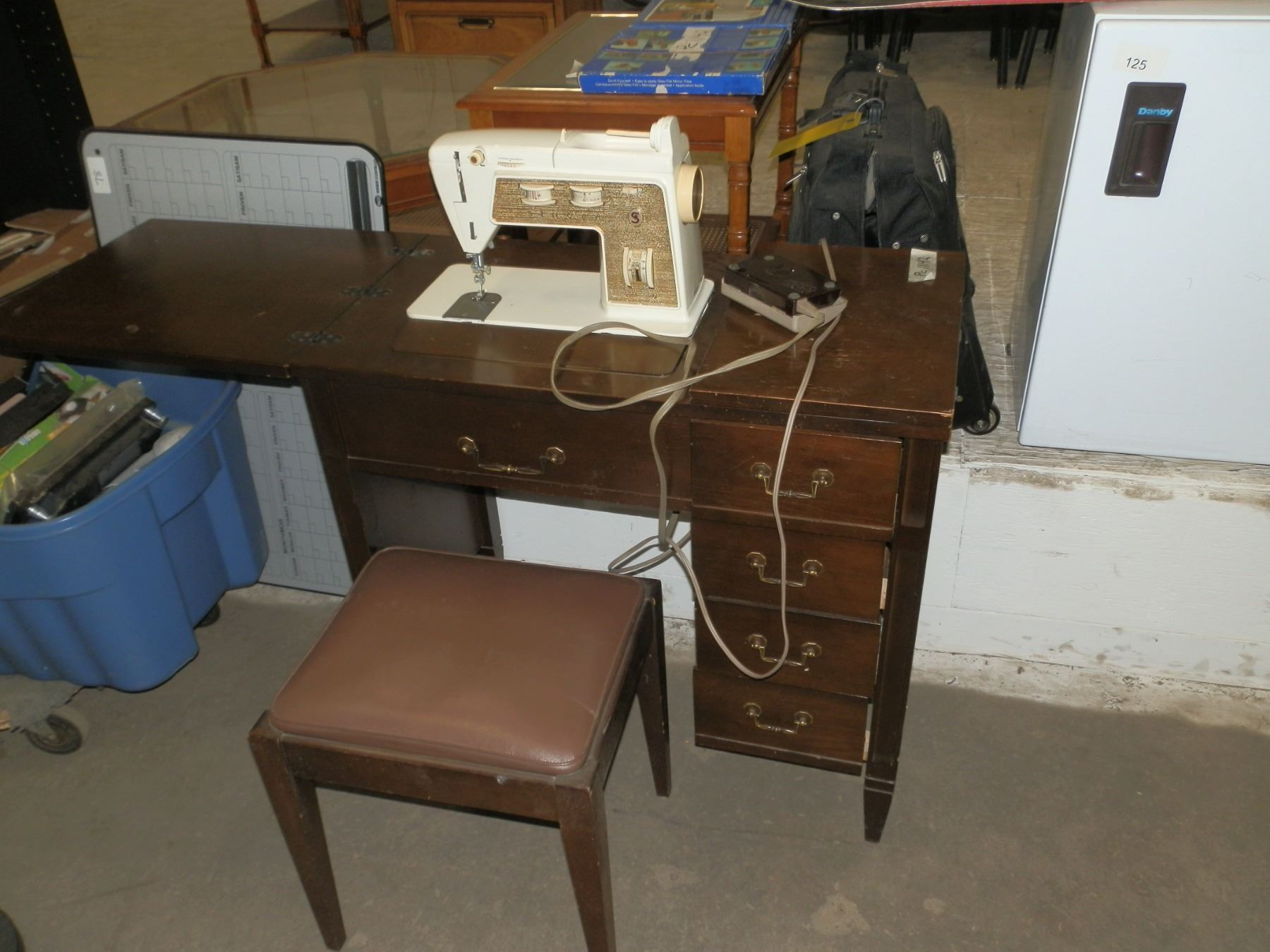 Singer Sewing Machine, and desk, the machine lights up, may need some tlc...used