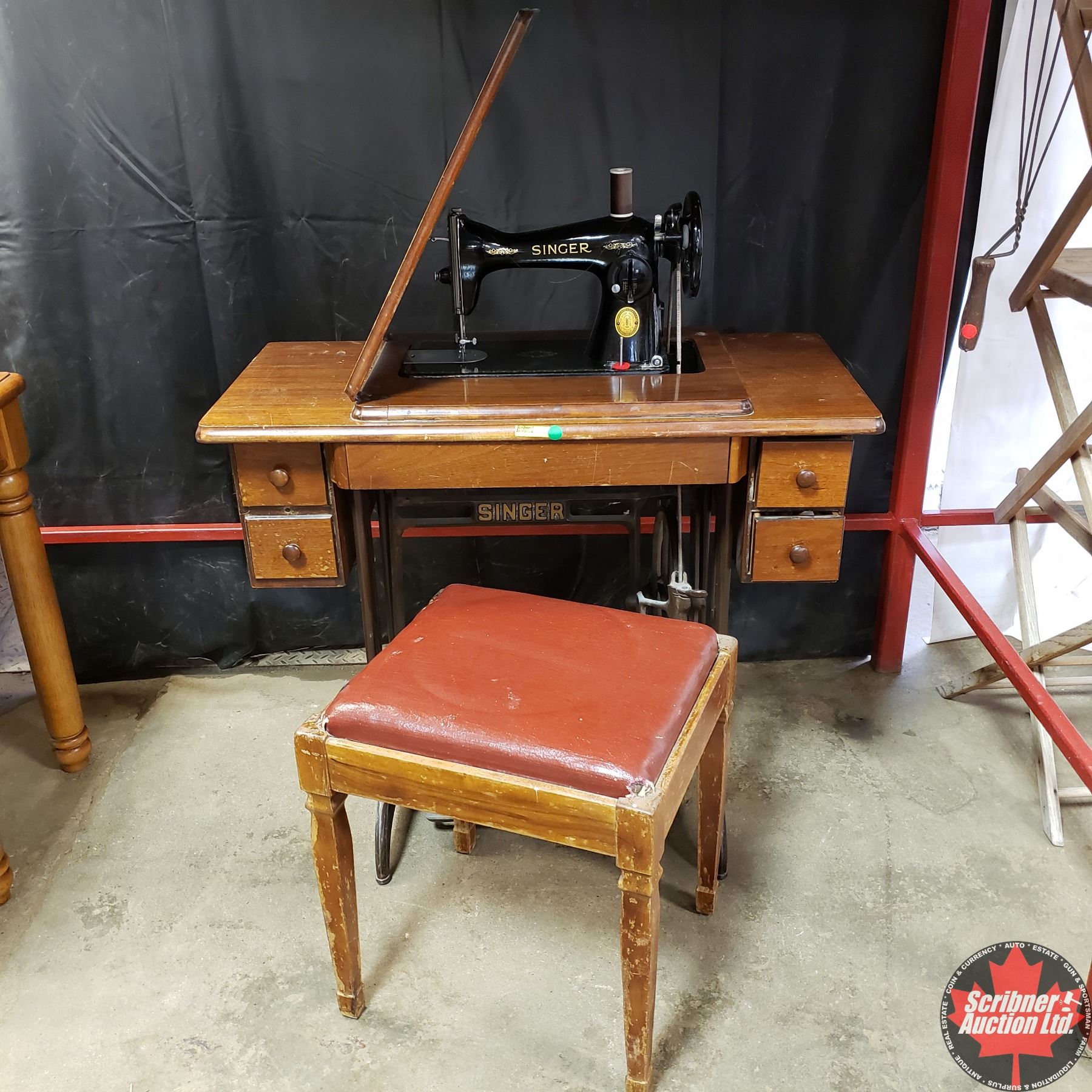 Singer Treadle Sewing Machine w/Contents S/N#JC915502