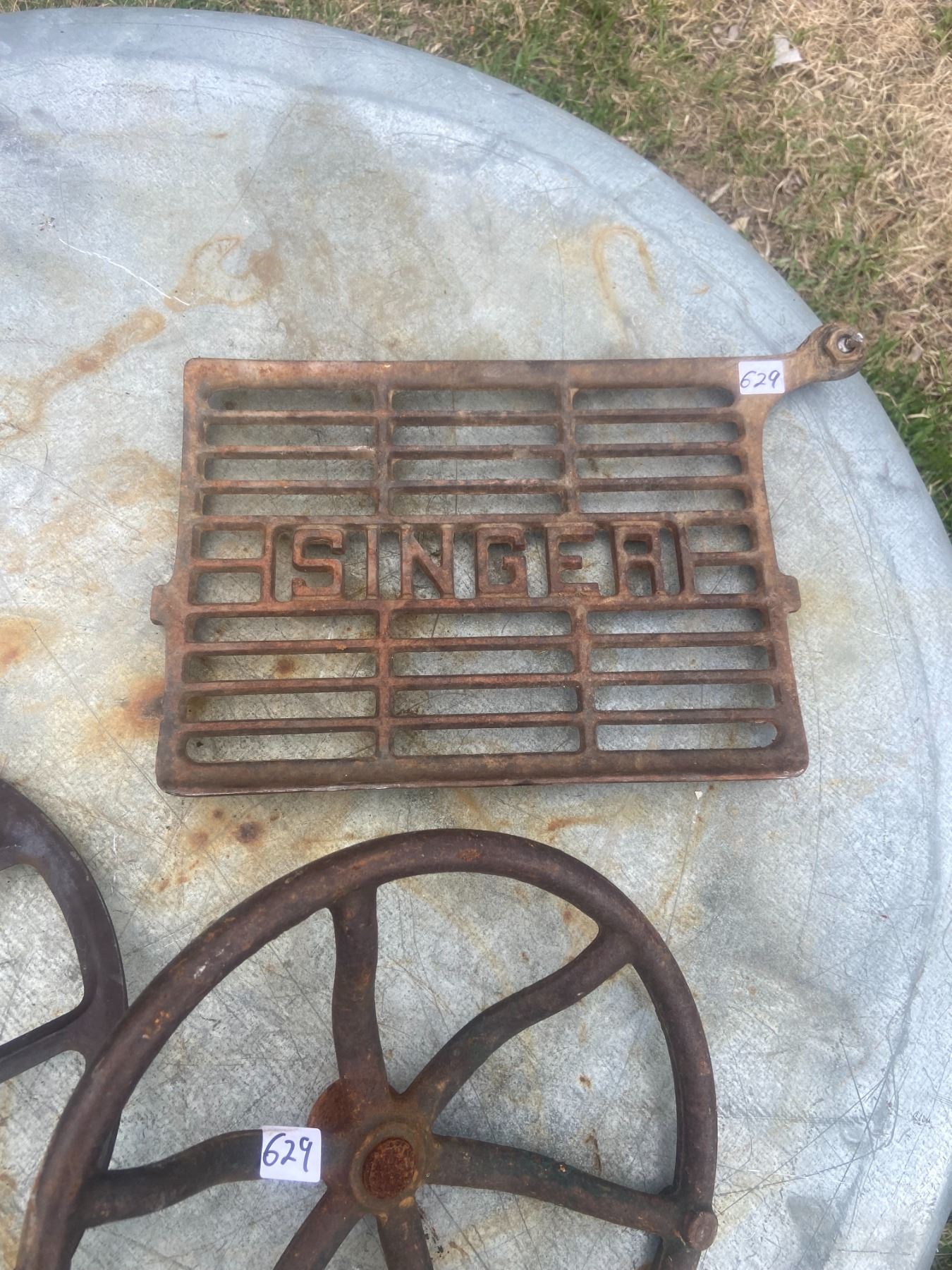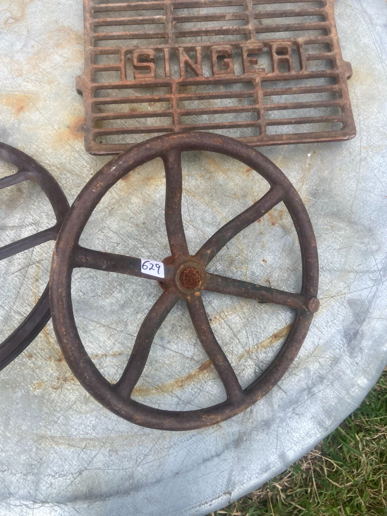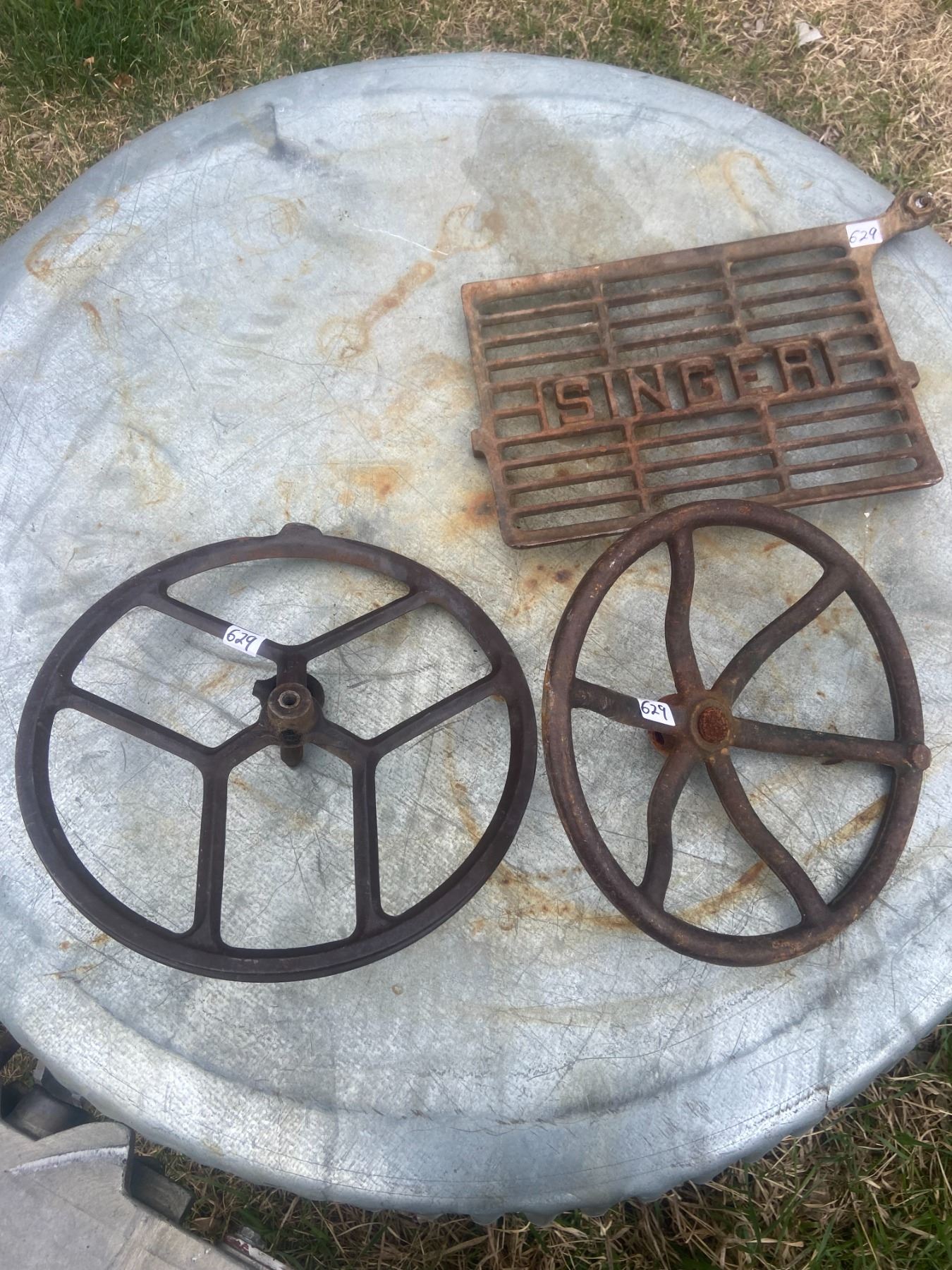 Singer treadle pedal and 2 cast iron wheels
