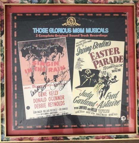 Singin' In The Rain and Easter Parade MGM Musical Original sound track recordings album autographed by Debbie Reynolds and castmates, and framed (15"x15").