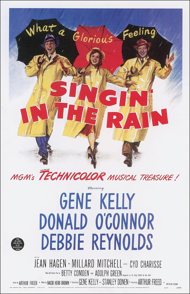 Ballpoint signature, “Gene Kelly,” on an off-white 5.5 x 4 album page; and a felt tip signature “Debbie Reynolds”; and a ballpoint signature, “Donald O’Connor,” on individual off-white 6 x 4 cards. In fine condition, with creasing to bottom of O’Connor’s card. Accompanied by a color 11 x 17 mini poster for the film.
