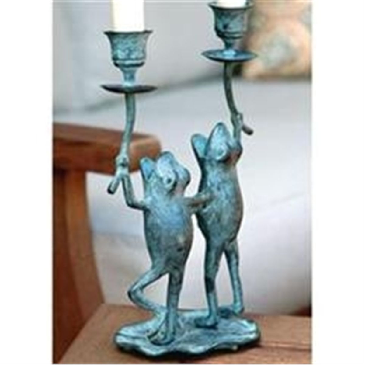 Singing Frog Duo Taper Candleholder - 10.5h - Brass