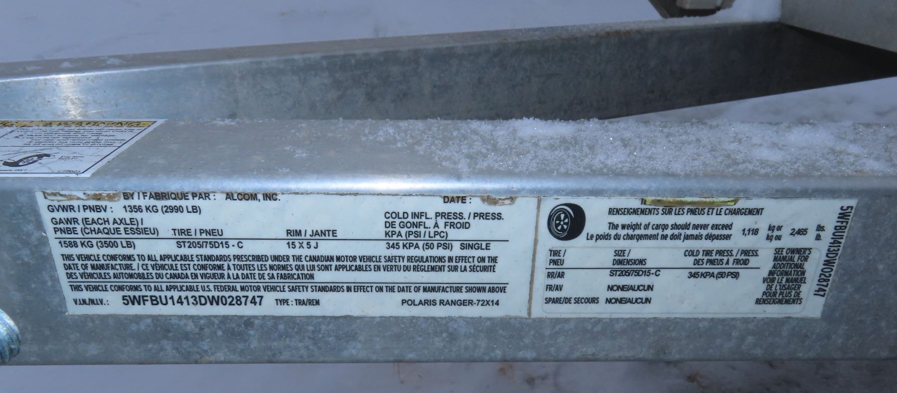 Single Axle Aluminum Trailer (size: 6'W x 14'L x 2'H) - VIN #: 5WFBU1413DWO28747