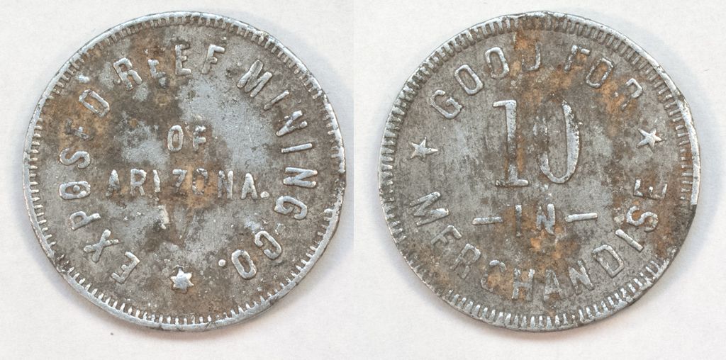 EXPOSED REEF MINING CO. // 10 Aluminum "V" counterstamp - Token used from 1901- 1902