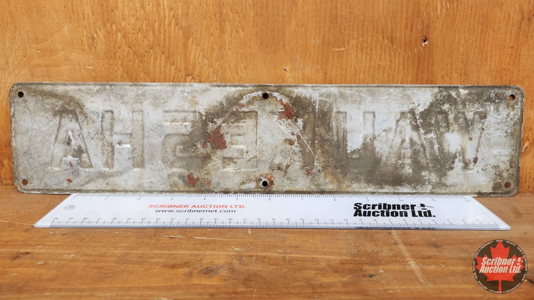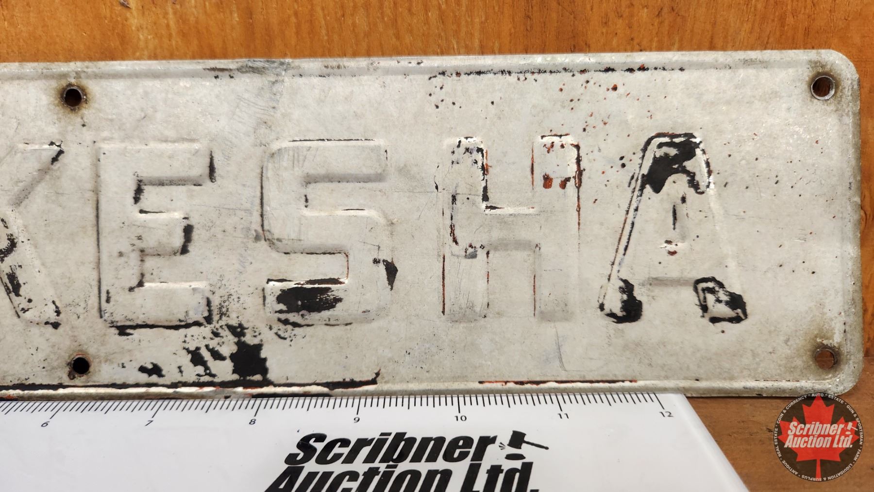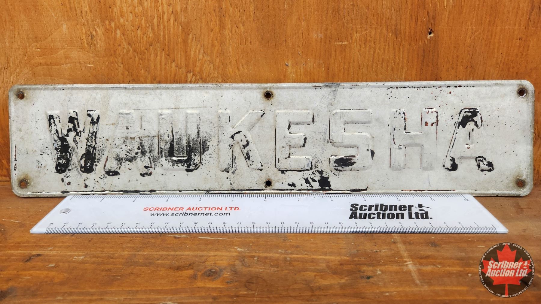 Single Side Embossed Tin Sign : " Waukesha" (3-1/2"H x 16"W) (SEE PICS!)