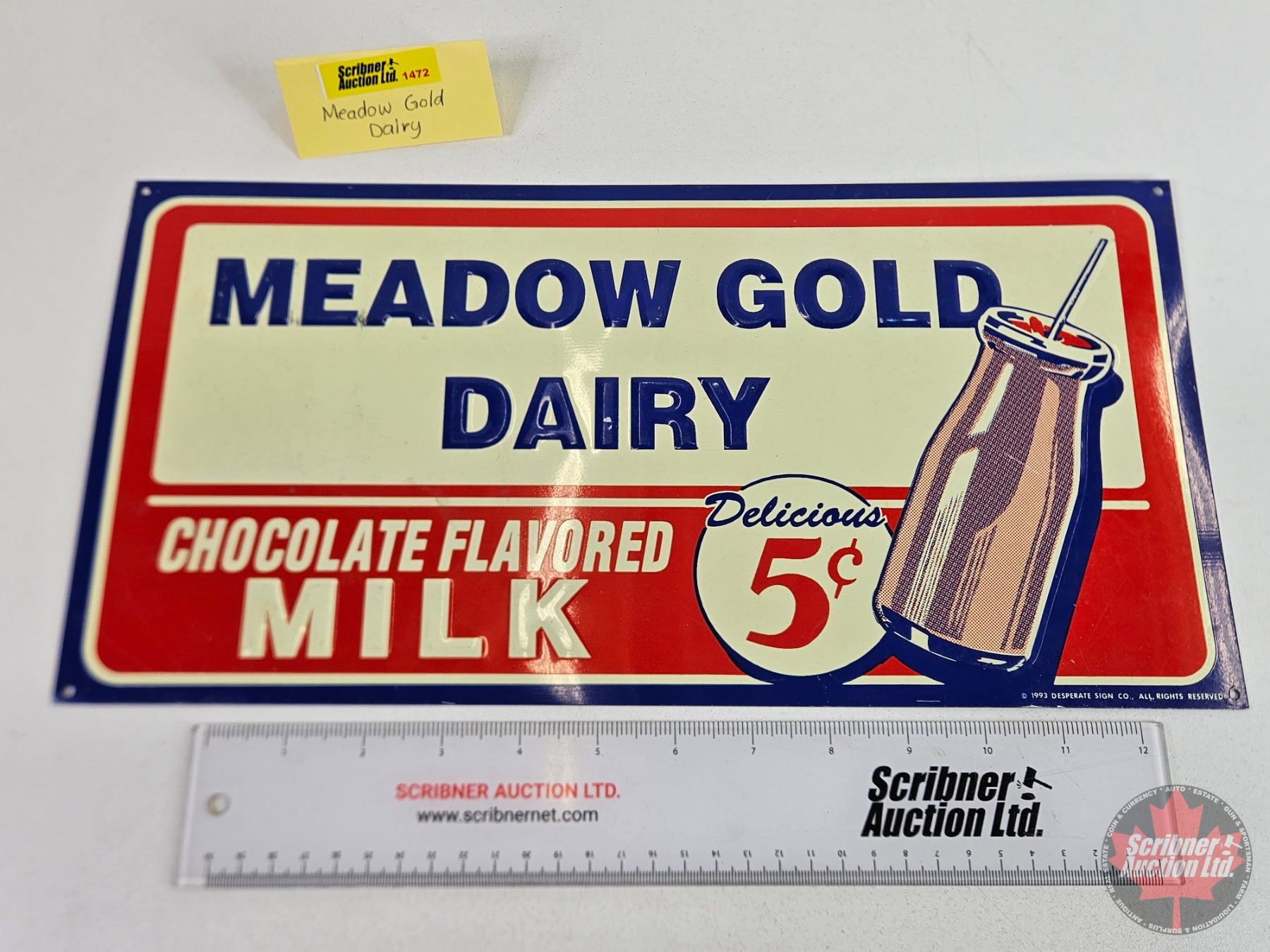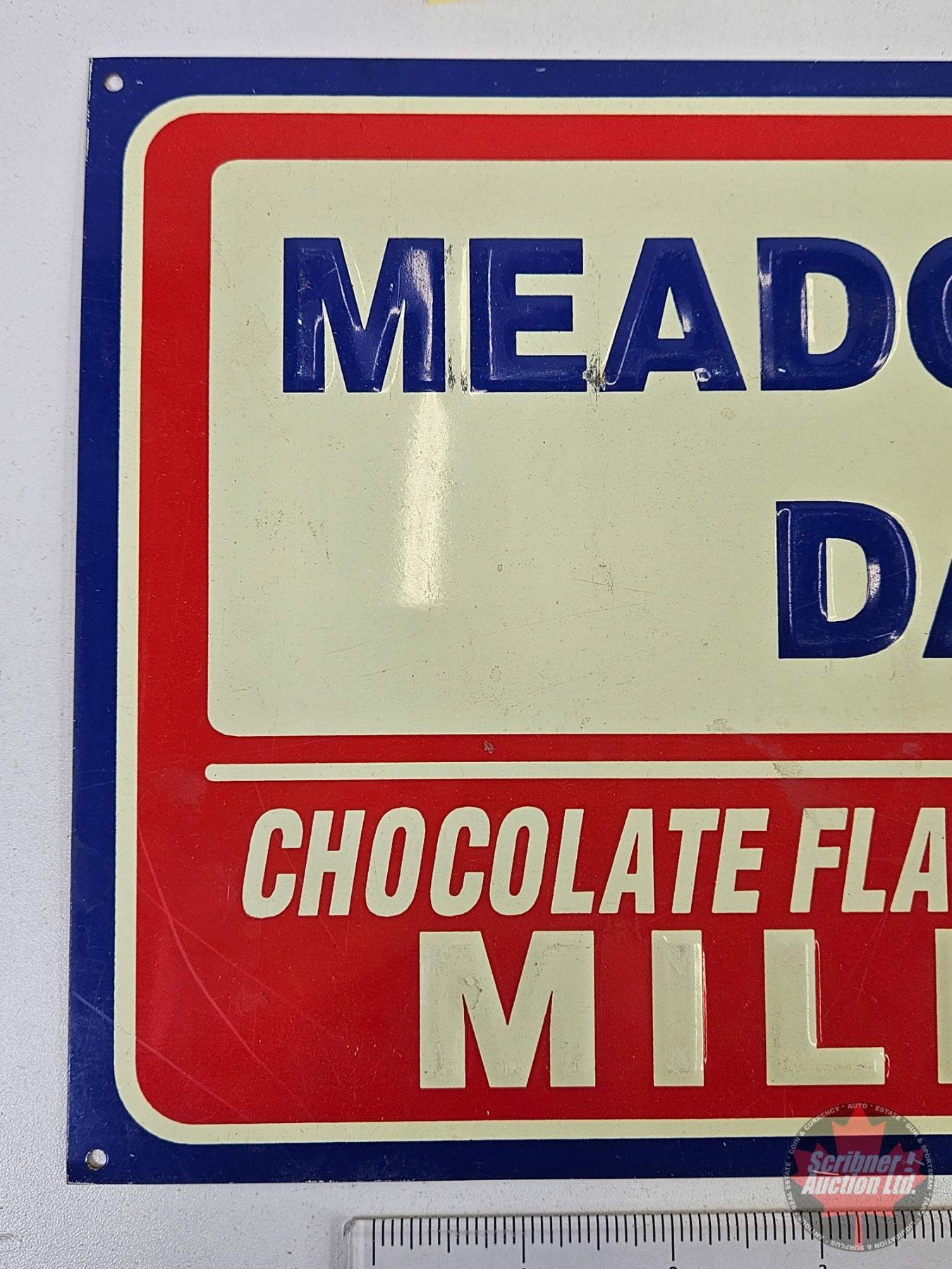 Single Side Tin Sign : MEADOW GOLD DAIRY CHOCOLATE FLAVORED MILK 5¢ (Embossed)