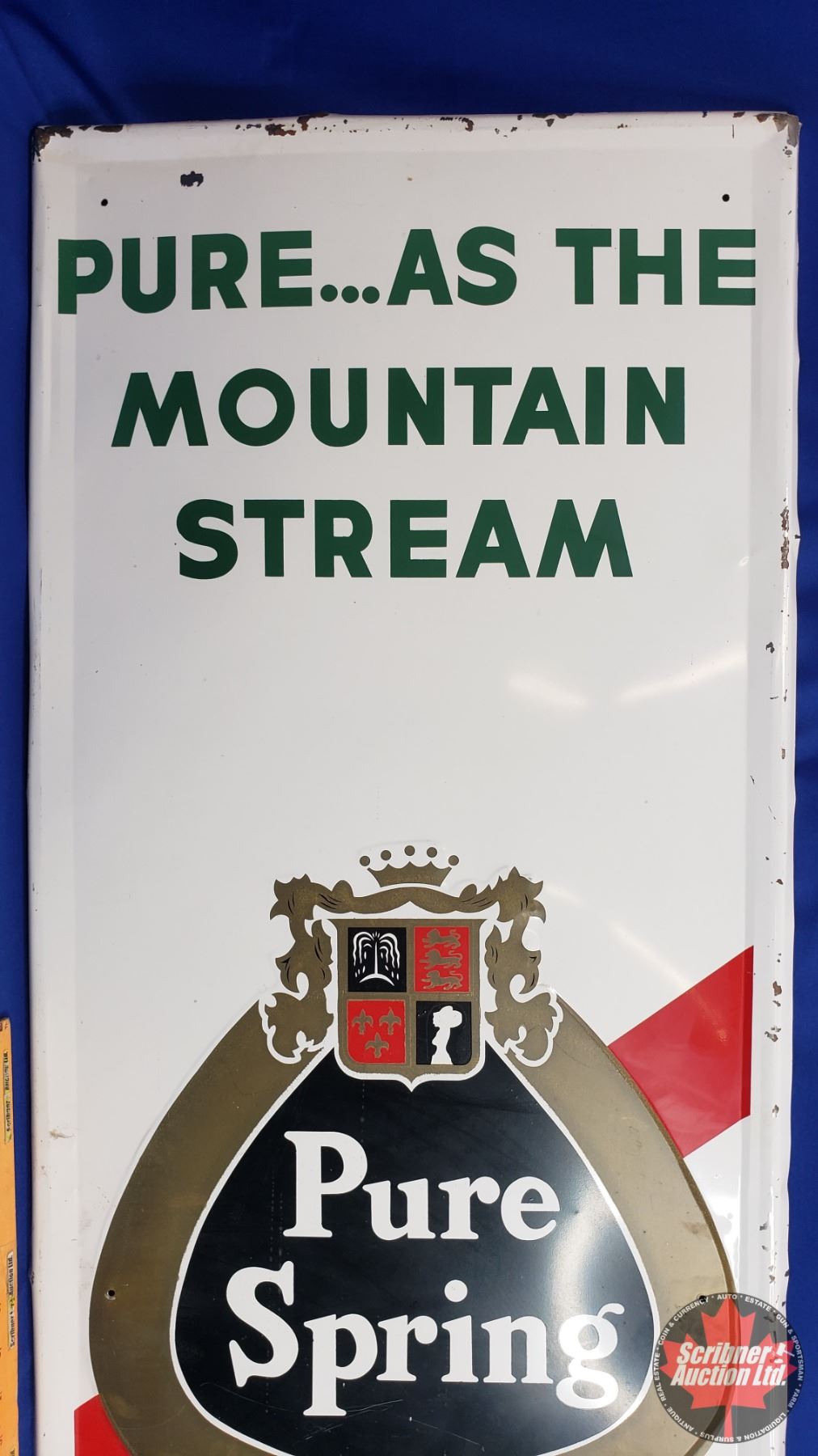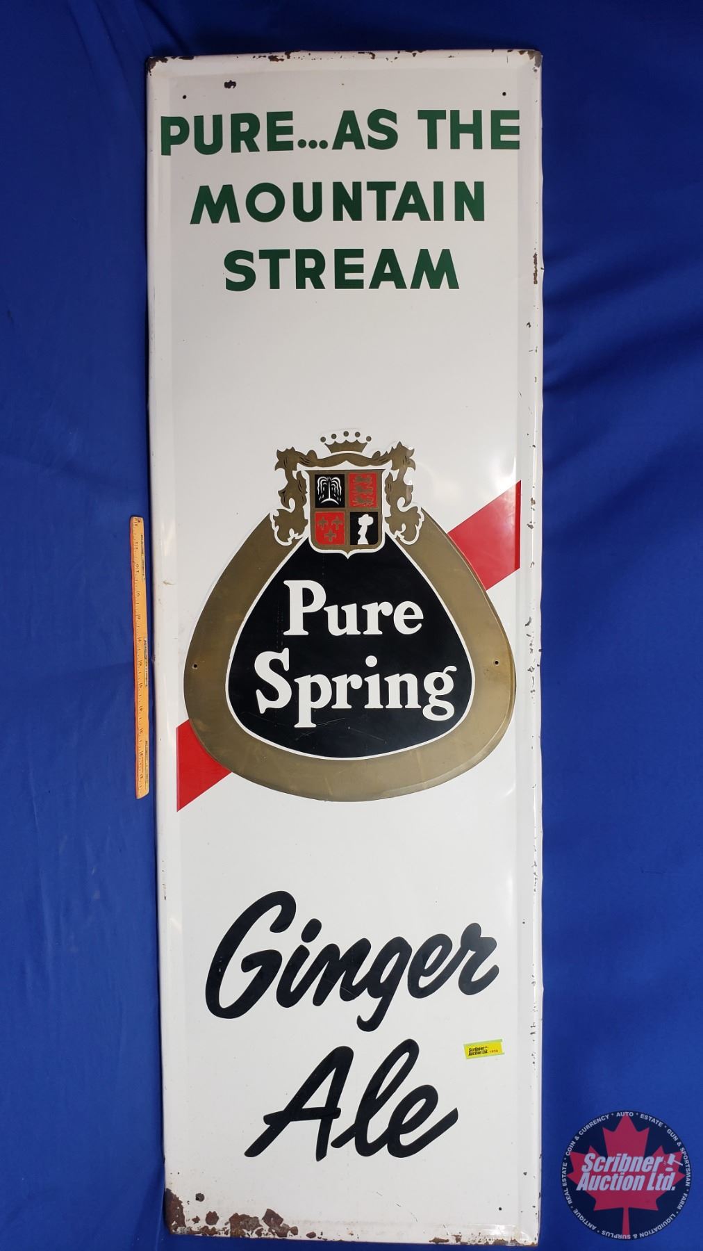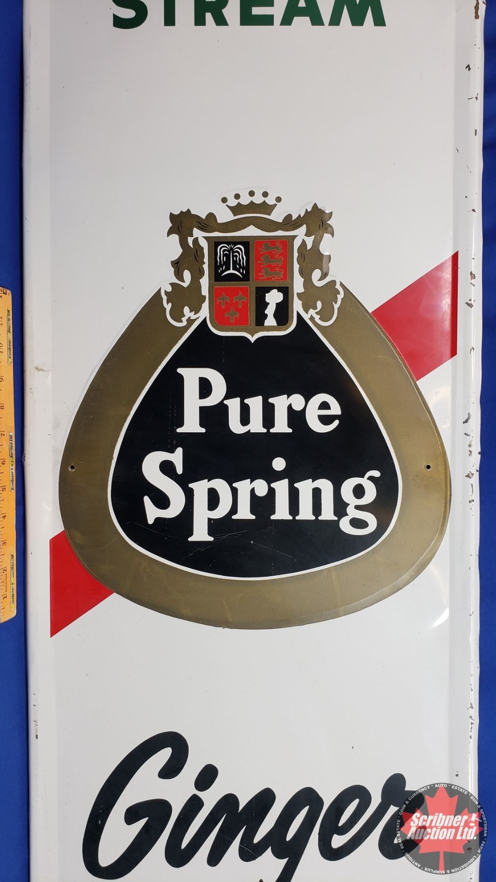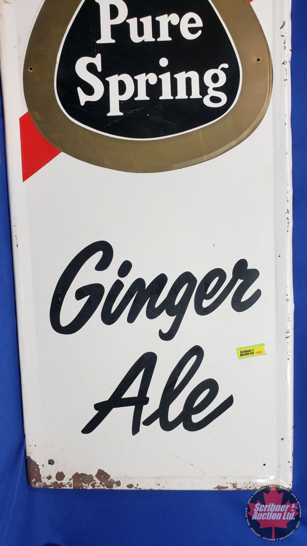 Single Side Tin Sign "PURE SPRING GINGER ALE" "Pure… As the Mountain Stream" (53-1/2"H x 17-1/2"W x 1/4"D) (SEE PICS!)
