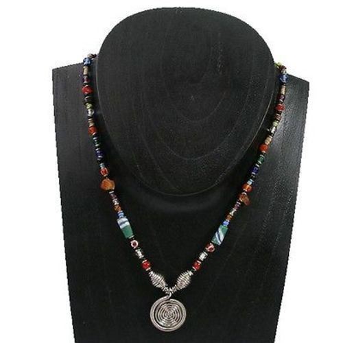 Single Spiral Multicolor Beaded 'Hope' Necklace - Zakal **|**|** This beaded necklace features a center swirl of electroplated copper surrounded by glass seed beads and chips of stone. The necklace is approximately 17 inches in length #ZCB010_Spiral_202072