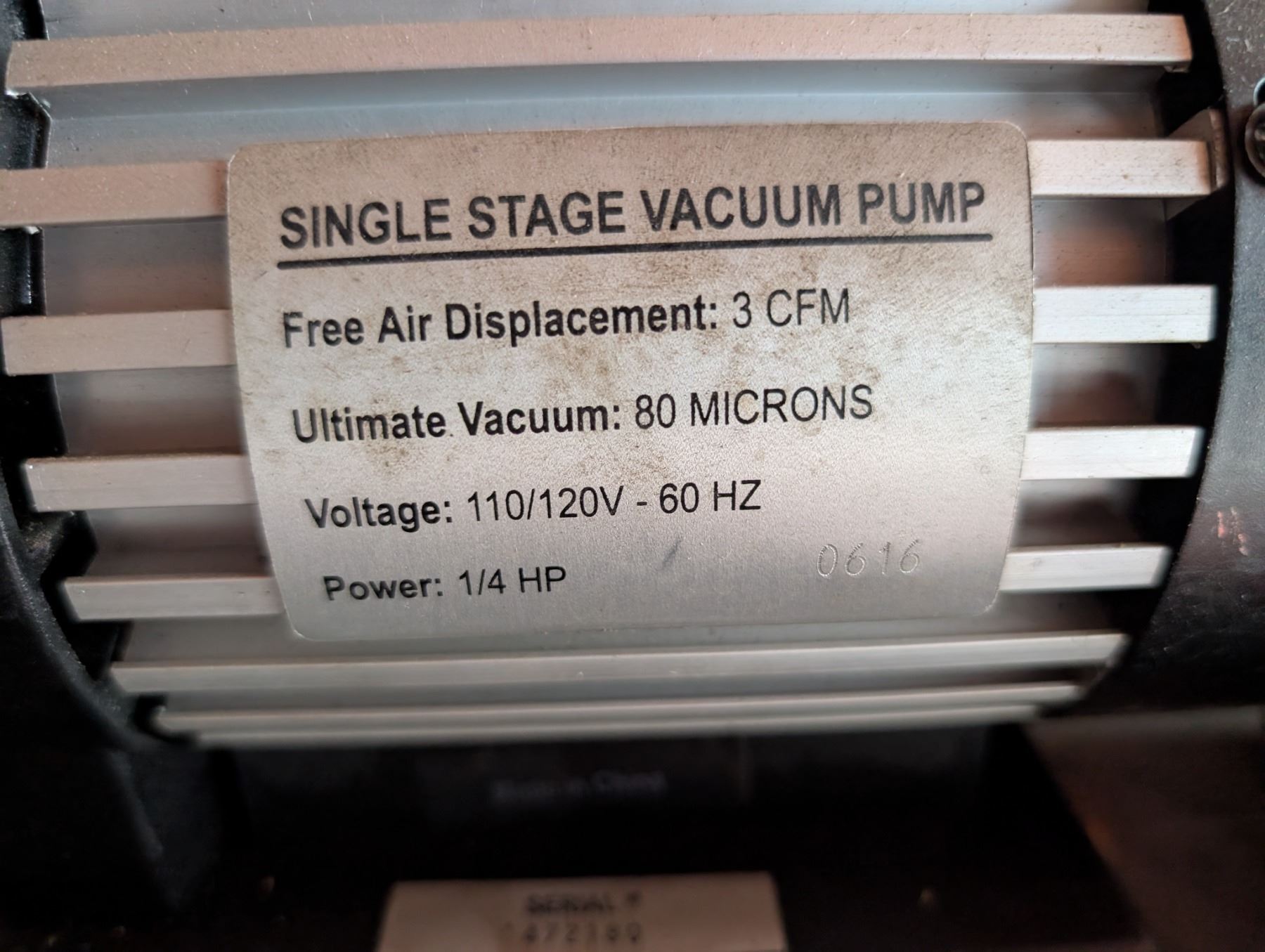 Single Stage Vacuum Pump Ser.472180 (not Tested)