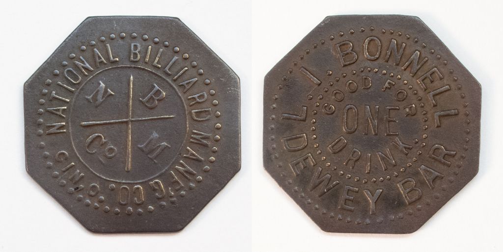 L.I. BONNELL DEWEY BAR // NATIONAL BILLIARD rev. OCT. Brass - Only Know Token example from this location High Quality VERY RARE!!