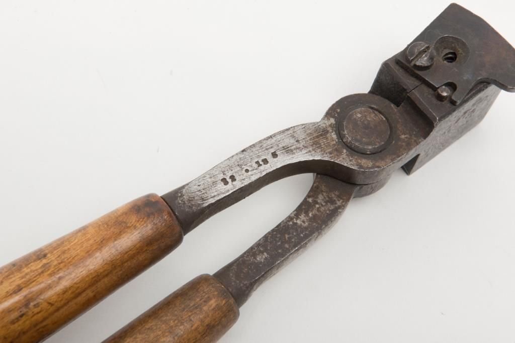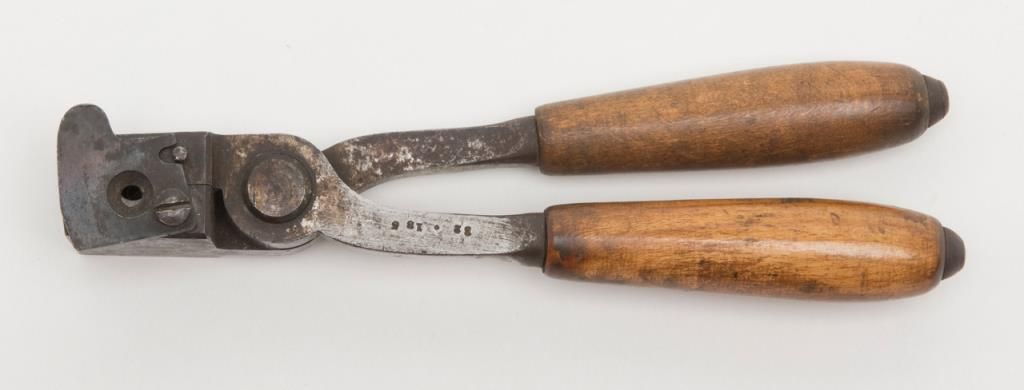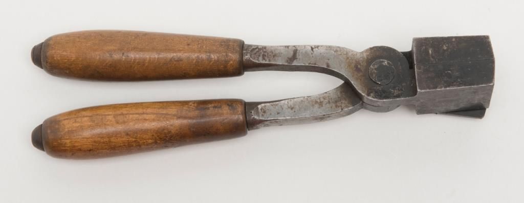 Single cavity bullet mold for .32 cal., 135 grain with wood handles. Est.: $125-$225.