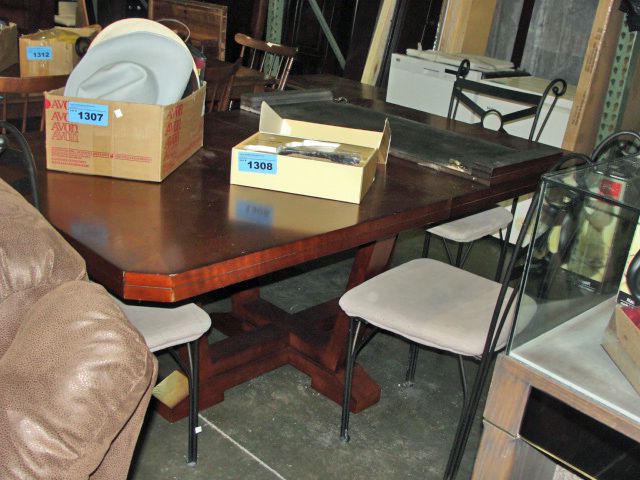Single pedastol dining room table with one leaf