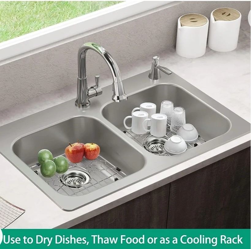 Uprimu 2pcs Set, 13.5" x 11.5" Stainless Steel Sink Mat, With Center Drain Hole, Rust Resistant Metal, Open Box, Like New Condition