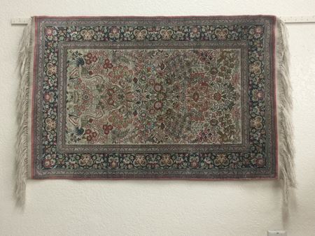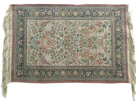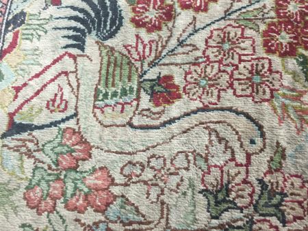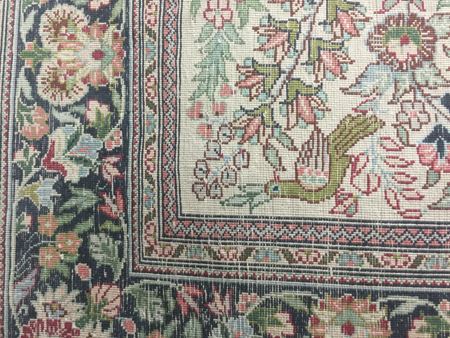 Late 20th Century, Exquisite 100% silk foundation pictorial motif tapestry with fringe, done in the finest quality. Approximately 800 stitches per inch. Good condition. 36" x 24" WAQ