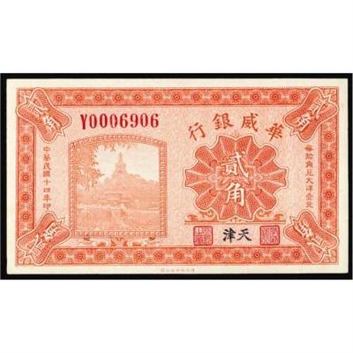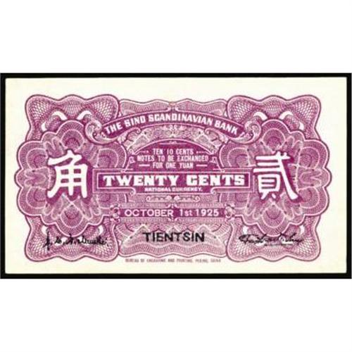 <style type="text/css"> body, td, th { font-family: Arial, Helvetica, sans-serif; font-size: 12px; color: #482424; margin: 0px; padding: 0px; } #header { background-image: url(http://www.bowersandmerena.com/ebay/images/template_v3_01.gif); clear: both; background-color: #590303; border-top-width: 2px; border-top-style: solid; border-top-color: #B38C4F; } #header #header_wrapper { height: 75px; clear: both; width: 800px; margin-right: auto; margin-left: auto; background-image: url(http://www.bowersandmerena.com/ebay/images/template_v3_03.gif); background-repeat: no-repeat; background-position: right; color: #F3EDCC; } #header #header_wrapper #header_logo { float: left; height: 75px; width: 444px; background-image: url(http://www.bowersandmerena.com/ebay/images/template_v3_02.gif); background-repeat: no-repeat; font-size: 10px; text-transform: capitalize; color: #B38C4F; } #header #header_wrapper #header_right { float: left; height: 75px; width: 356px; text-align: right; } #header #header_wrapper #header_right #headerLoginBtn { margin-bottom: 30px; } #header #header_wrapper #header_right input#txtSearch { color: #B49056; border: 1px solid #B49056; width: 175px; padding-top: 3px; padding-right: 3px; padding-bottom: 4px; padding-left: 3px; } #nav { height: 37px; background-image: url(http://www.bowersandmerena.com/ebay/images/template_v3_05.gif); clear: both; } #nav #nav_wrapper { height: 35px; width: 800px; margin-right: auto; margin-left: auto; border-left-width: 1px; border-left-style: solid; border-left-color: #B38C4F; } #nav #nav_wrapper a { padding-right: 15px; padding-left: 15px; border-right-width: 1px; border-right-style: solid; border-right-color: #B38C4F; height: 25px; padding-top: 10px; display: block; float: left; text-decoration: none; font-weight: bold; color: #5D0303; } #nav #nav_wrapper a:hover { color: #B38C4F; } #nav #nav_wrapper #search { float: right; padding-top: 7px; } #nav #nav_wrapper #search #txtSearch { font-family: Arial, Helvetica, sans-serif; font-size: 10px; text-transform: uppercase; color: #D2AE75; border: 1px solid #B38C4F; padding: 3px; } #content_bgd { background-image: url(http://www.bowersandmerena.com/ebay/images/template_v3_09.gif); background-repeat: repeat-y; background-position: center; padding-top: 15px; padding-bottom: 15px; background-color: #FBFBDB; } #content_wrapper { clear: both; height: auto; width: 800px; margin-right: auto; margin-left: auto; } .LotDetailWhite { line-height:normal; font-size:13px; font-family: arial,helvetica,sans-serif; color: White; font-weight: bold; } .LotDetailInformation { line-height:normal; font-size: 13px; font-family: arial,helvetica,sans-serif; } .LotDetailMessage { line-height:normal; font-size: 13px; font-family: arial,helvetica,sans-serif; color: red; } } tr.HeaderAuctionTitle td { color: #000000; font-weight: bold; padding: 2px; background-image: url(http://www.bowersandmerena.com/ebay/images/template_v3_05.gif); background-repeat: repeat-x; border-bottom-width: 1px; border-bottom-style: solid; border-bottom-color: #B38C4F; } table.AuctionSummary a, table.AuctionSummary a:link, table.AuctionSummary a:visited { color: #0000FF; text-decoration: none; } } td.tableHeaderLeft { border-left-width: 1px; border-left-style: solid; border-left-color: #B38C4F; } td.tableHeaderRight { border-right-width: 1px; border-right-style: solid; border-right-color: #B38C4F; } td.tableCellMiddle { border-left-width: 1px; border-left-style: solid; border-left-color: #B38C4F; border-right-width: 1px; border-right-style: solid; border-right-color: #B38C4F; padding: 5px; } tr.footer td { border-top-width: 1px; border-top-style: solid; border-top-color: #B38C4F; } </style> </head> <body> <div id="header"> <div id="header_wrapper"> <div id="header_logo"> </div> <div id="header_right"> </div> </div> </div> <div id="nav"> <div id="nav_wrapper"> <a href="http://www.bowersandmerena.com">Our eBayLive Auctions</a> <a href="#PaymentInfo">Payment Information</a> <a href="#ShippingInfo">Shipping Information</a> <a href="#About">About Bowers and Merena</a> </div> </div> <div id="content_bgd"> <div id="content_wrapper"> <table width="100%" border="0" cellpadding="5" cellspacing="0" class="AuctionSummary"> <tbody> <tr class="HeaderAuctionTitle" style="height: 25px;"> <td align="left" class="tableHeaderLeft" > </td> <td align="center" class="tableHeaderRight"> <span style="font-size: large;">Lot #517. Foreign Banks. Sino-Scandinavian Bank, 1925 Issue. </span> </td> </tr> <tr> <td colspan="3" class="tableCellMiddle"> Tientsin, 1925, 20 cents, P-S596, Issued banknote, Choice Uncirculated condition.